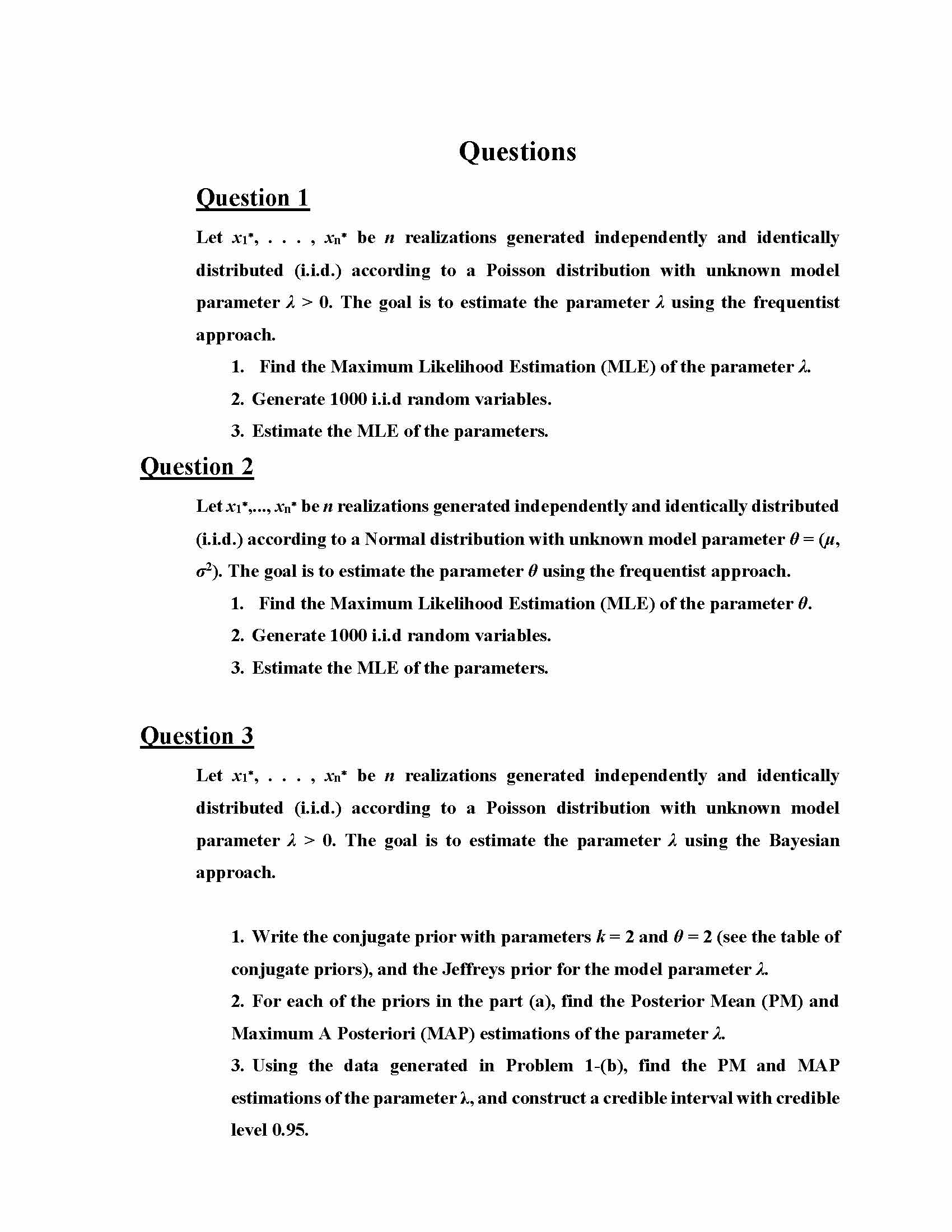 Questions Question 1 Let x1 ∗ , . . . , xn ∗ be n realizat...