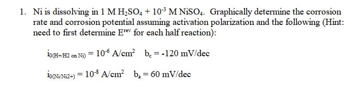 1. Ni is dissolving in 1 M H2SO4 + 10-3 M NiSO4. Graphically determ...