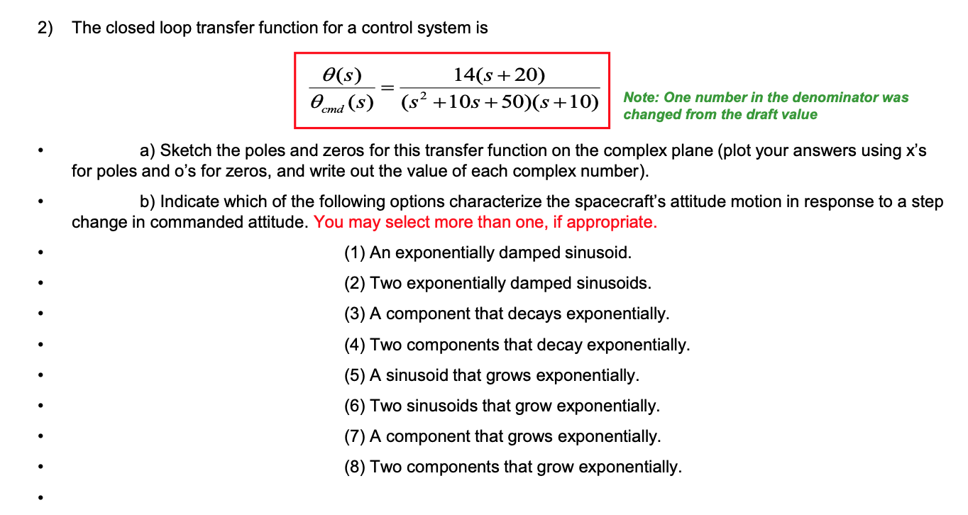 2) The closed loop transfer function for a control system is 0(s) ...