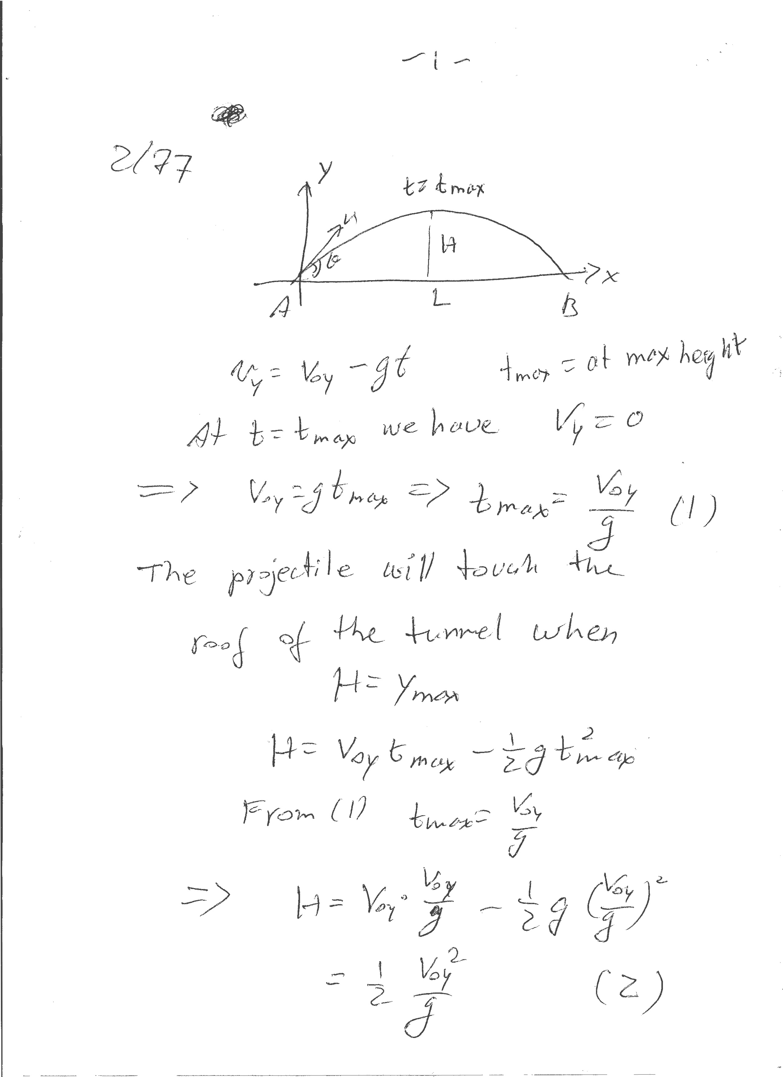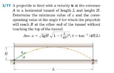 2/77 A projectile is fired with a velocity u at the entrance A to ...