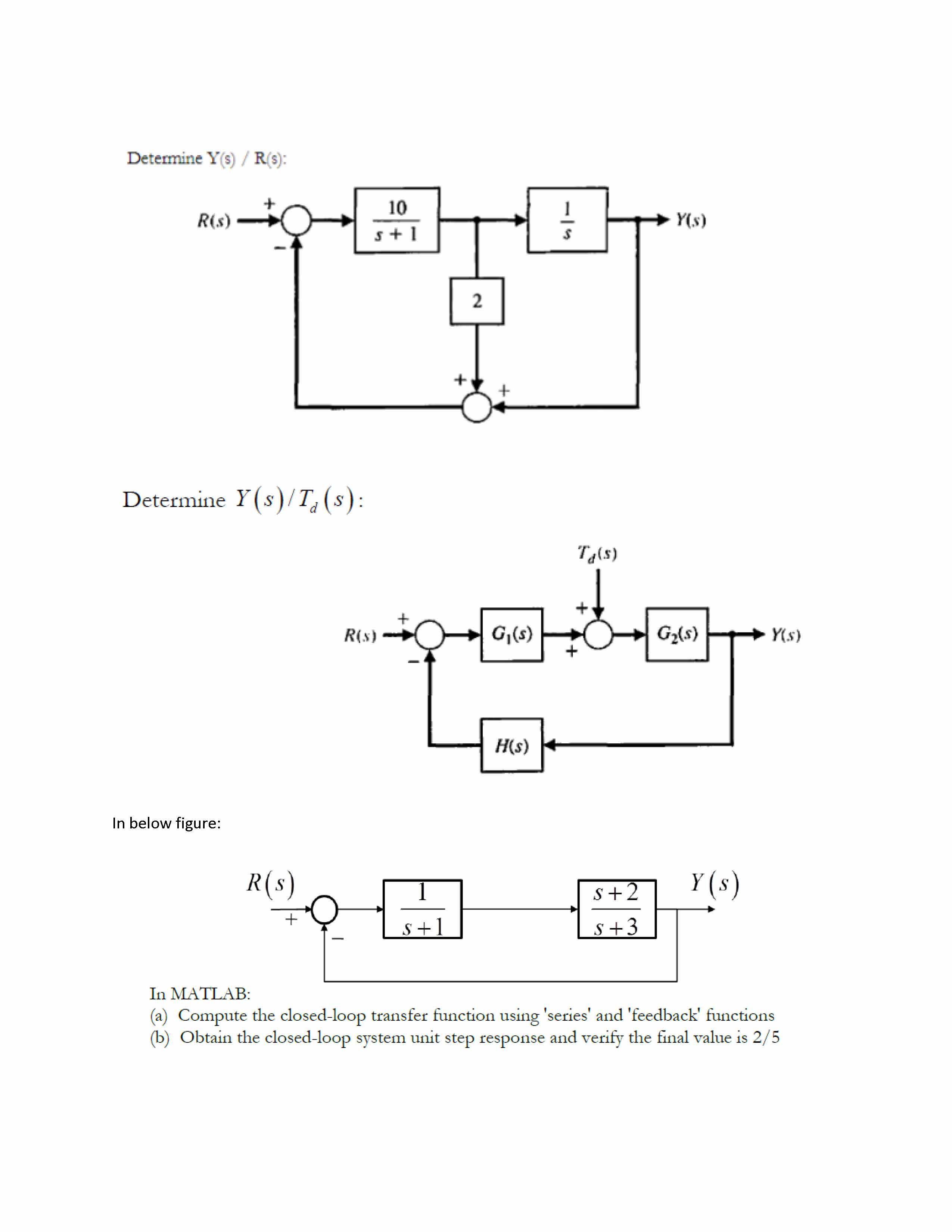 Determine Y(s) / R(s): + 10 1 R(s) Y(s) 5 + 1 2 + + Deter...