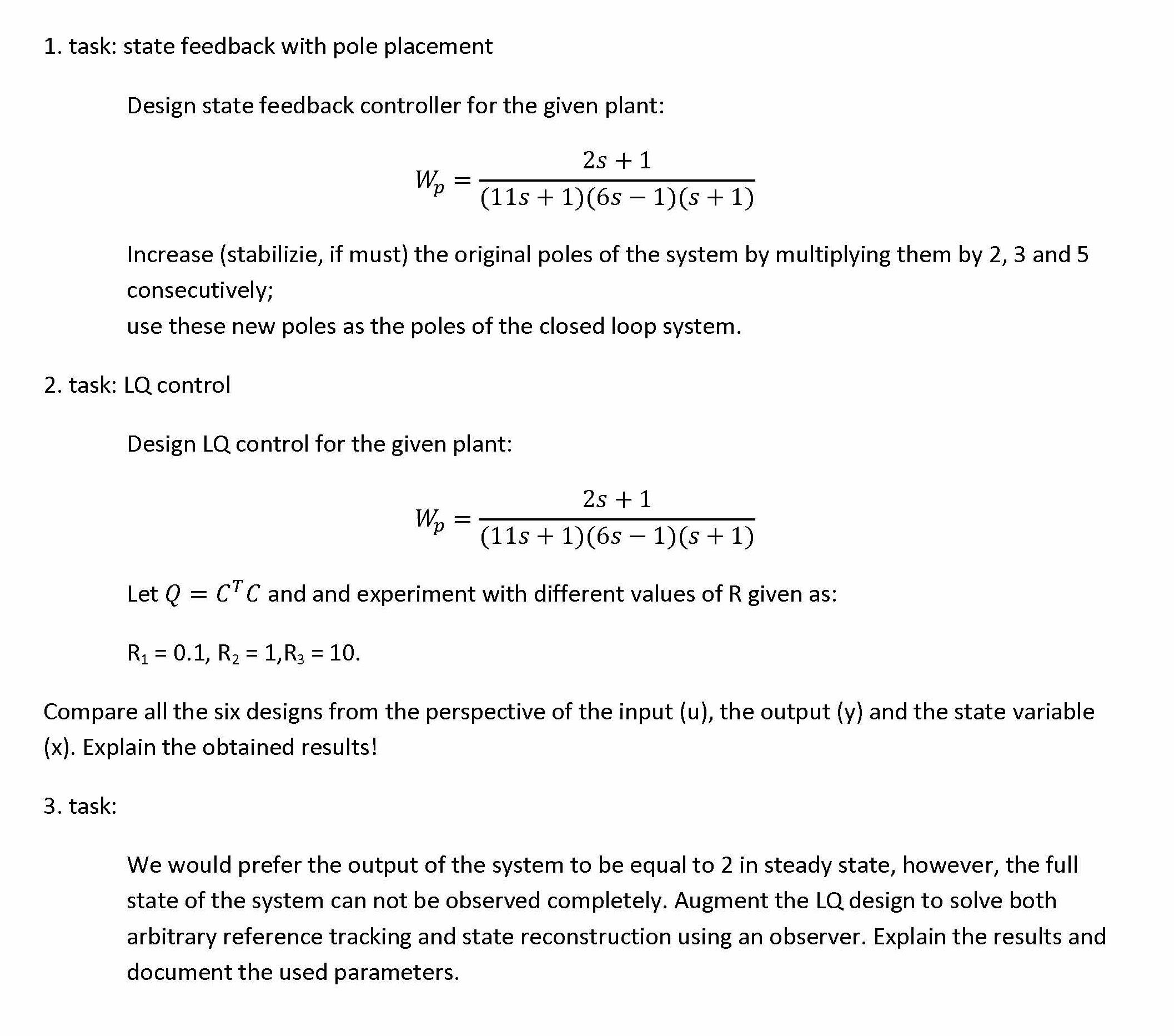 1. task: state feedback with pole placement Design state feedback...
