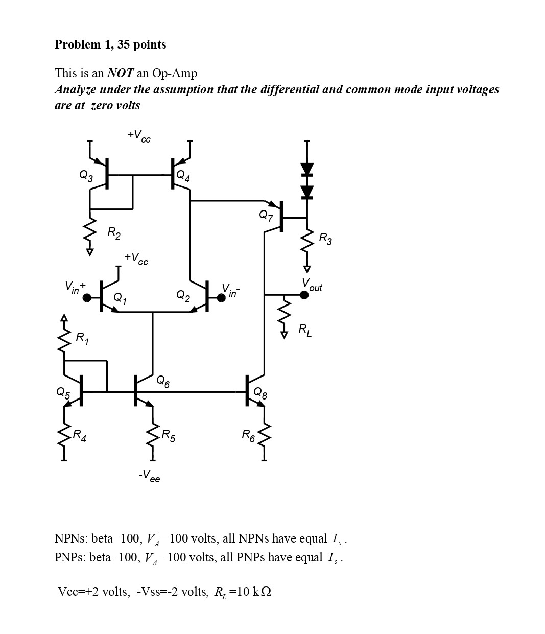Problem 1, 35 points This is an NOT an Op-Amp Analyze under the a...