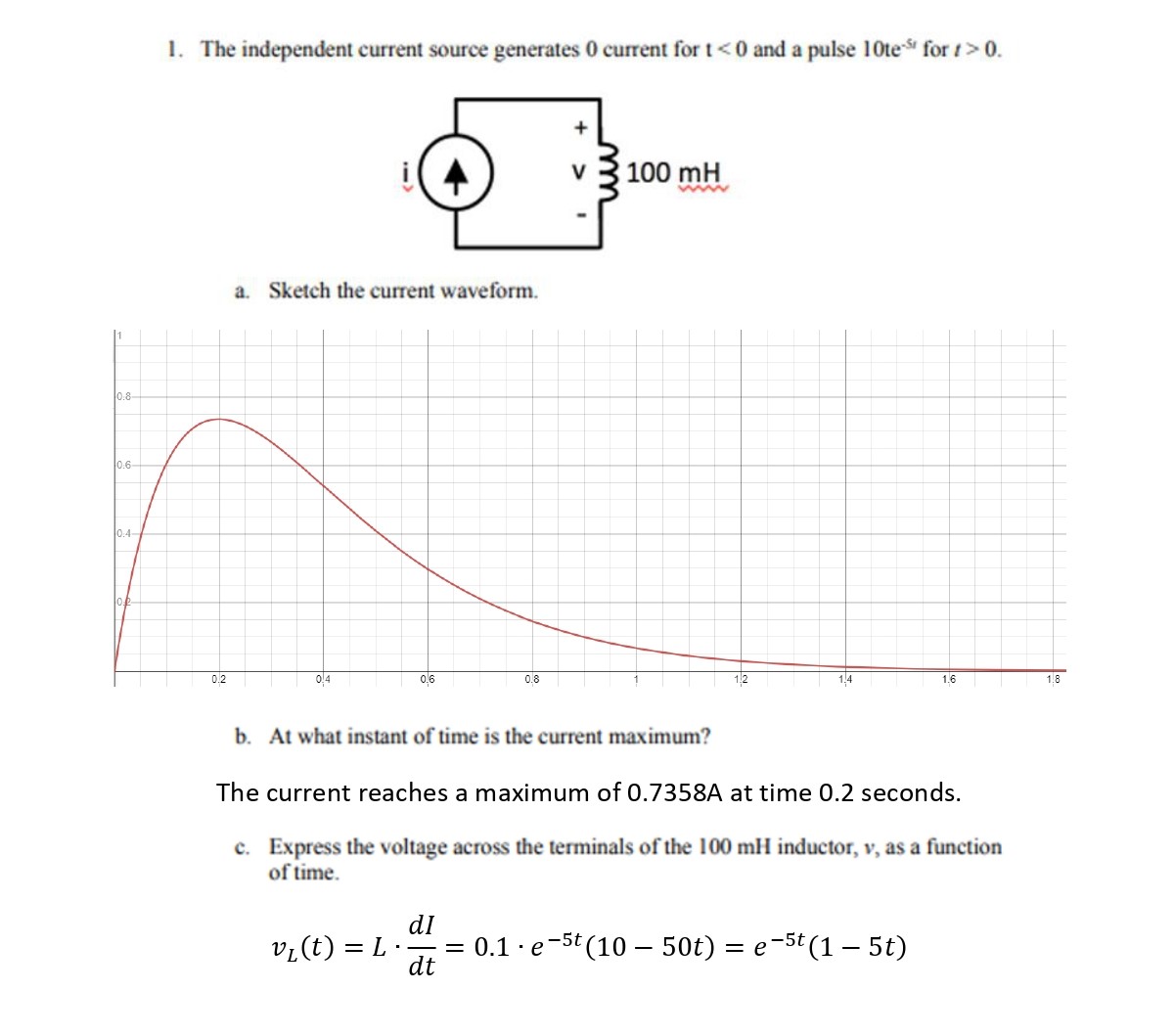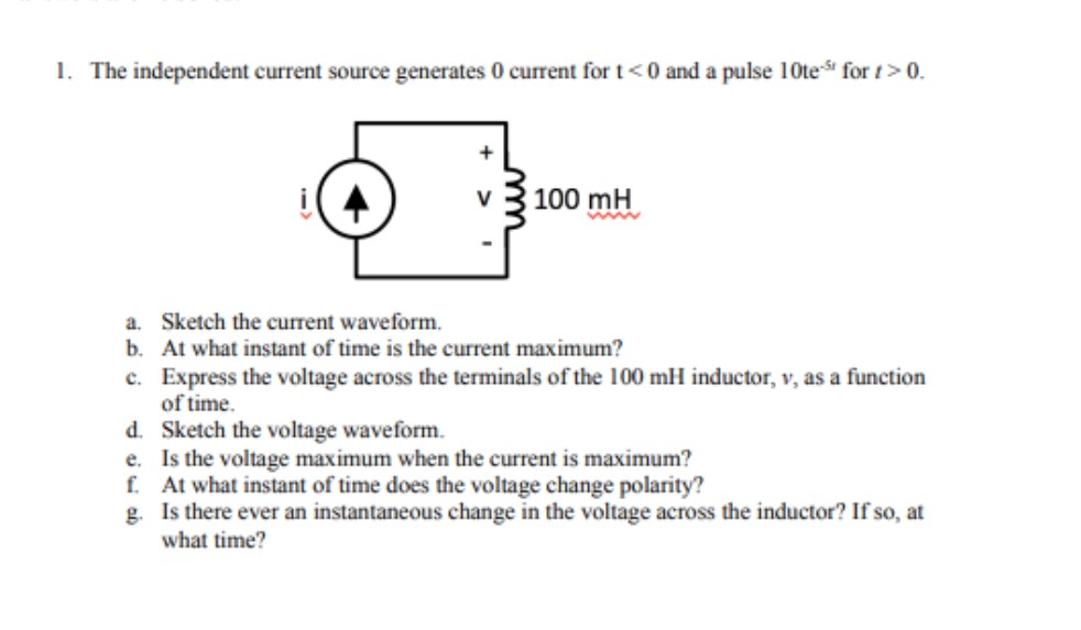 1. The independent current source generates 0 current for 1<0 an...