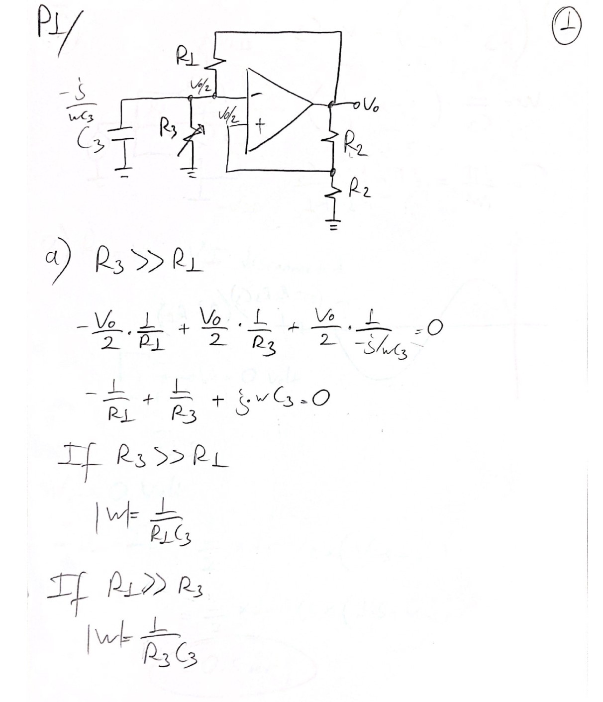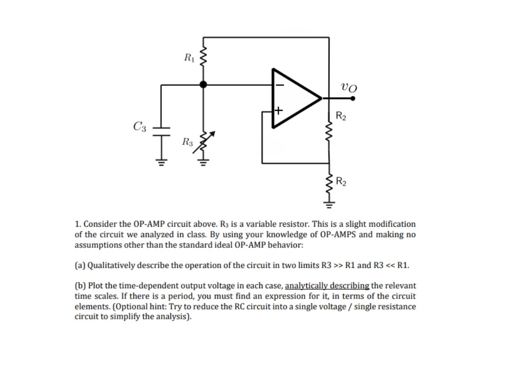 R1 vo R2 C3 R3 R2 OP-AMP circuit above. R3 is a variable resi...