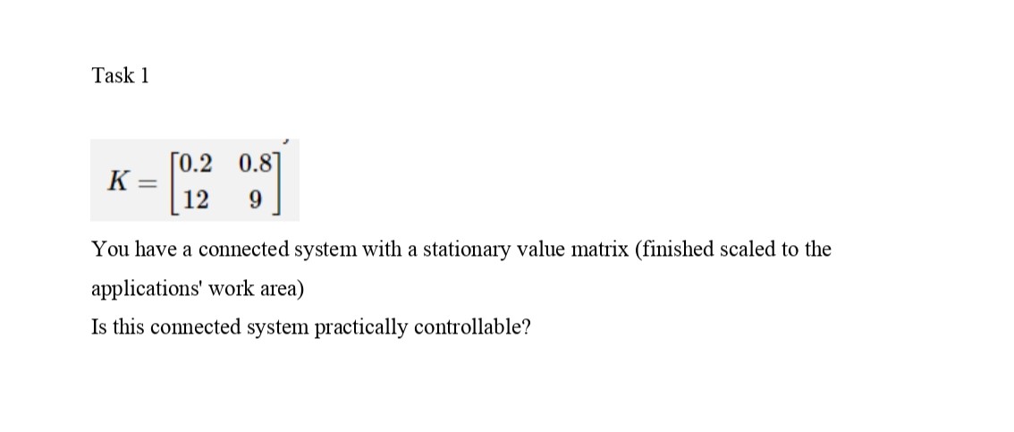 Task 1 , 0.2 0.8 K = 12 9 You have a connected system with a...