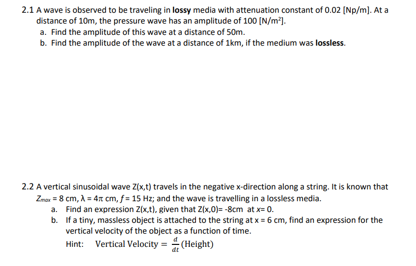 2.1 A wave is observed to be traveling in lossy media with attenuat...