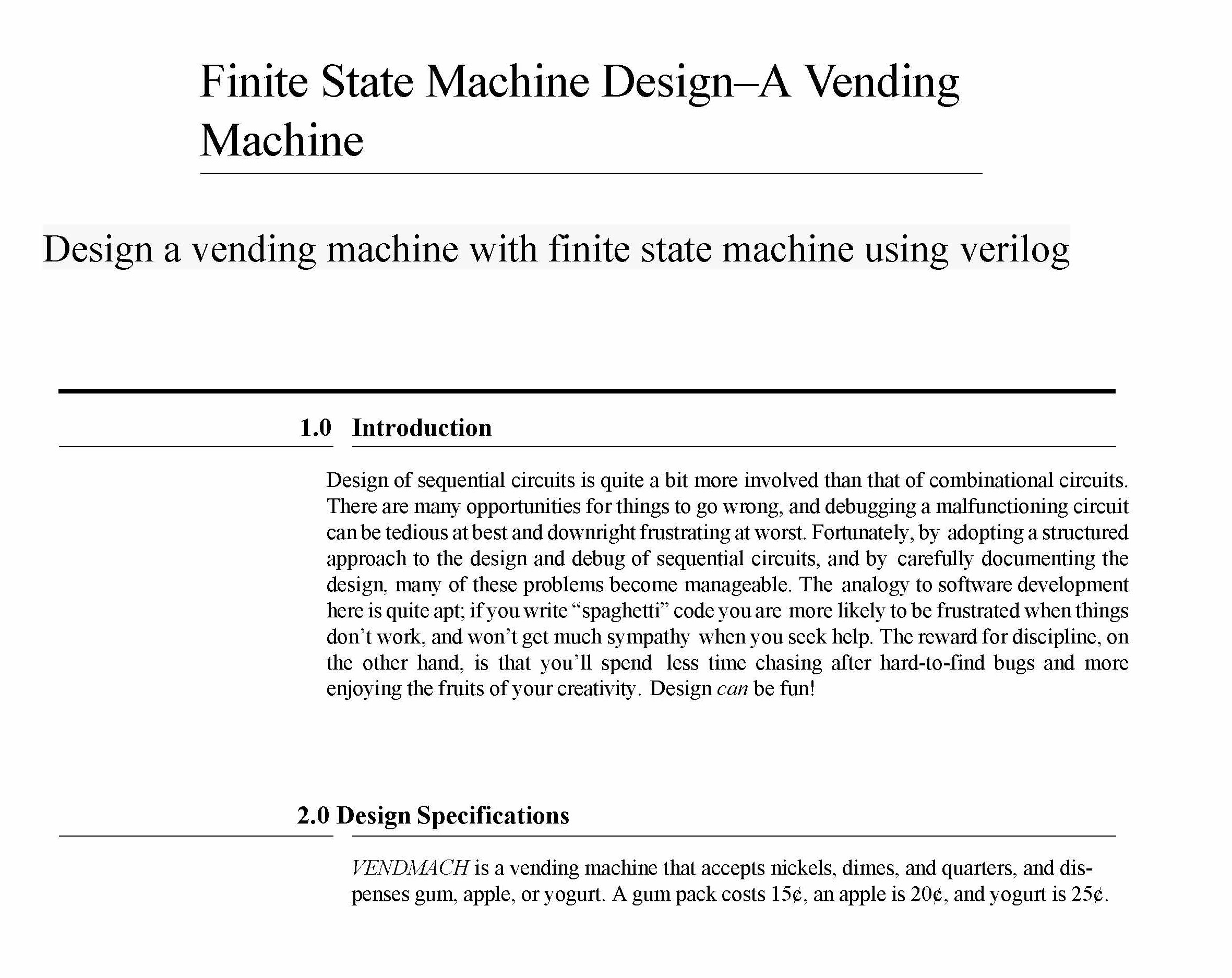 Finite State Machine Design–A Vending Machine Design a...