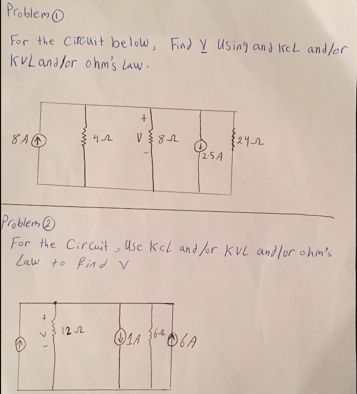 Problem I For the circuit below, Find V using and KCL and/or KuL...