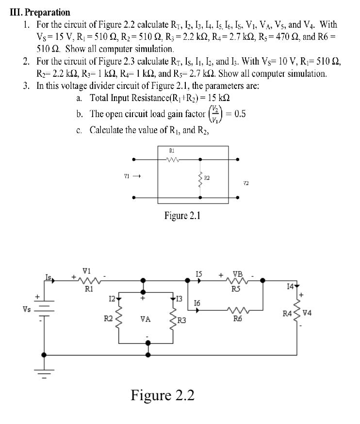 III. Preparation 1. For the circuit of Figure 2.2 calculate RT, I2...