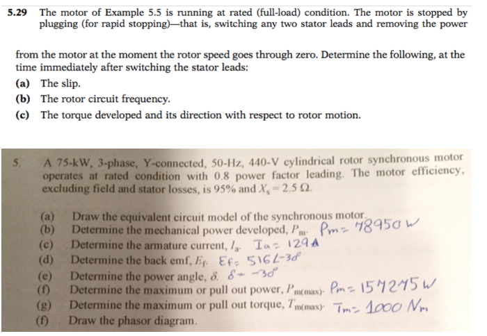 5.29 The motor of Example 5.5 is running at rated (full-load) condi...