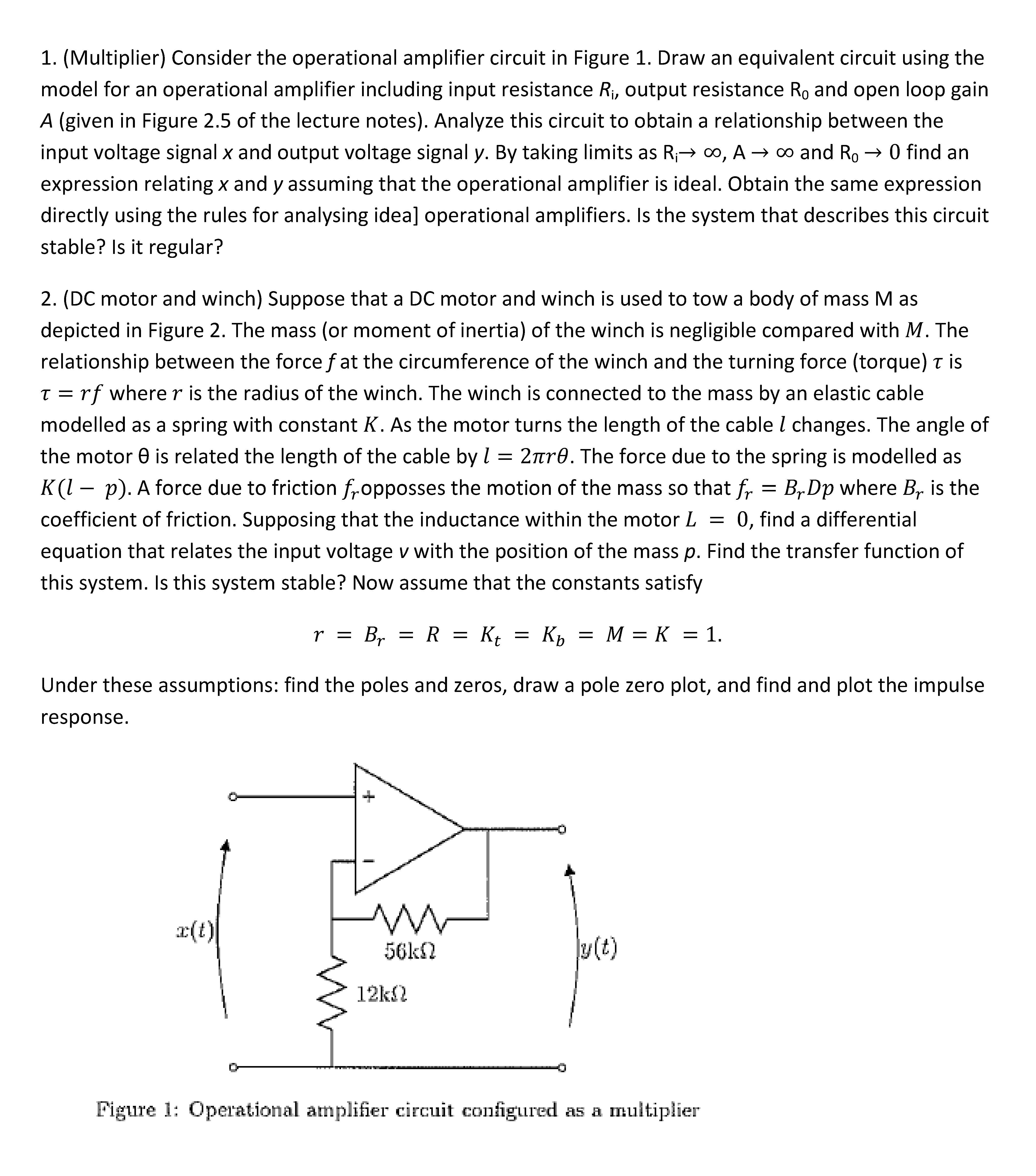 1. (Multiplier) Consider the operational amplifier circuit in Figur...