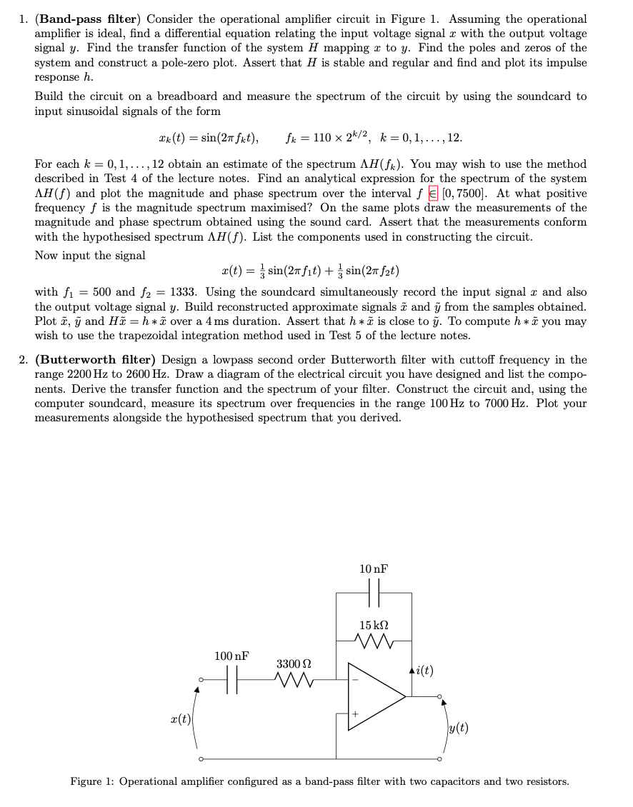 1. (Band-pass filter) Comsider the operational amplifier circuit in...
