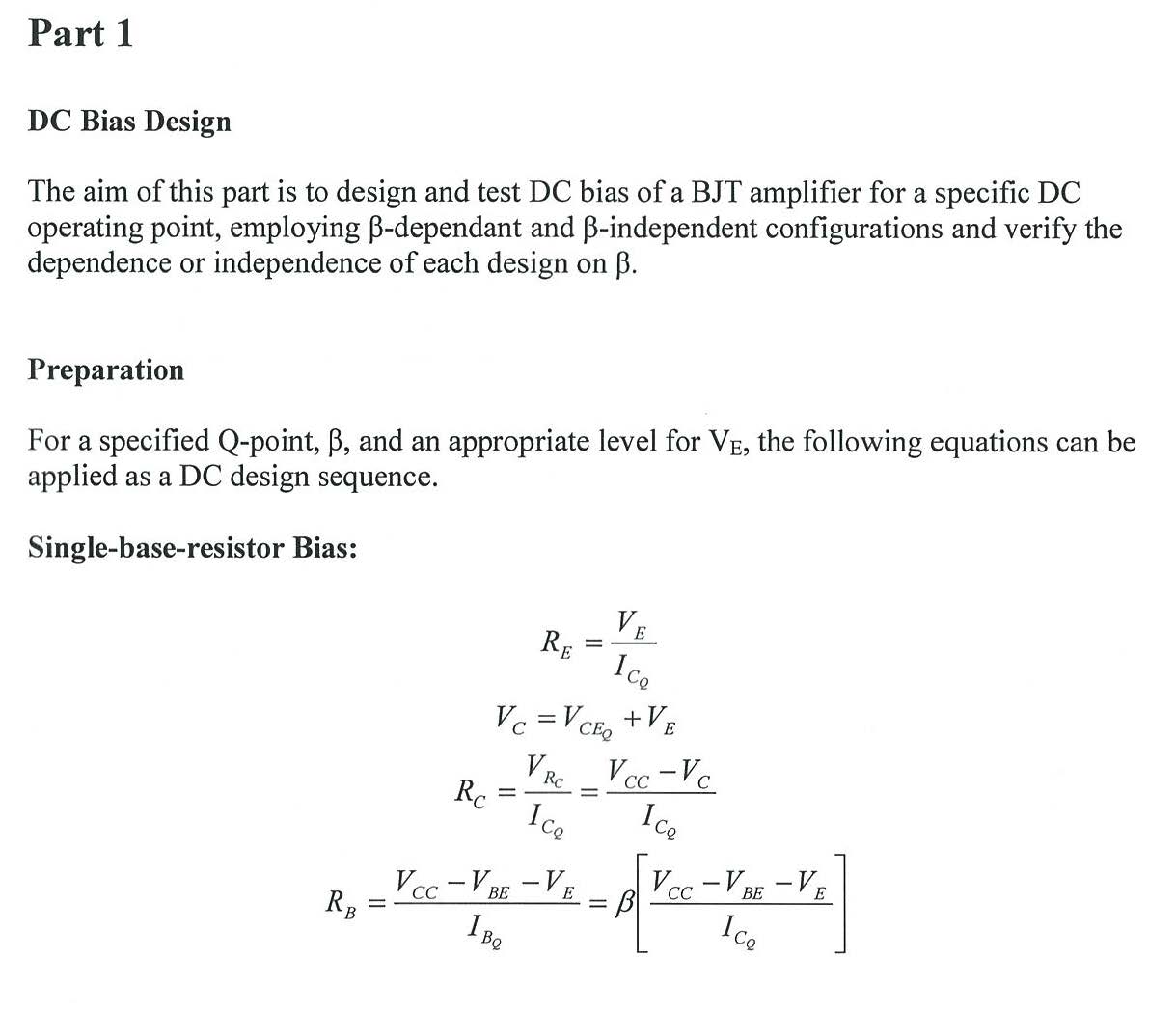 Part 1 DC Bias Design The aim of this part is to design and test...