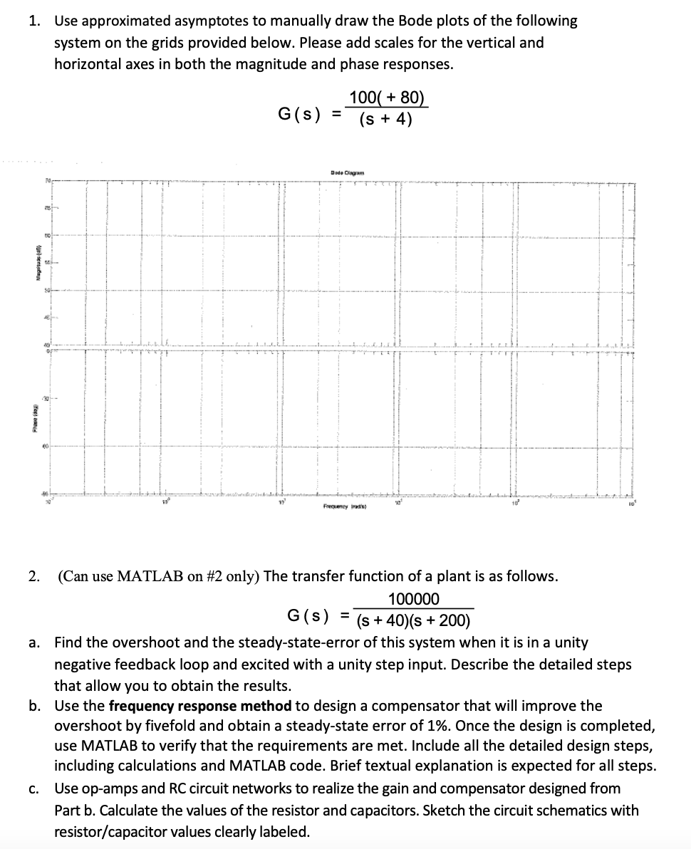 1. Use approximated asymptotes to manually draw the Bode plots of t...