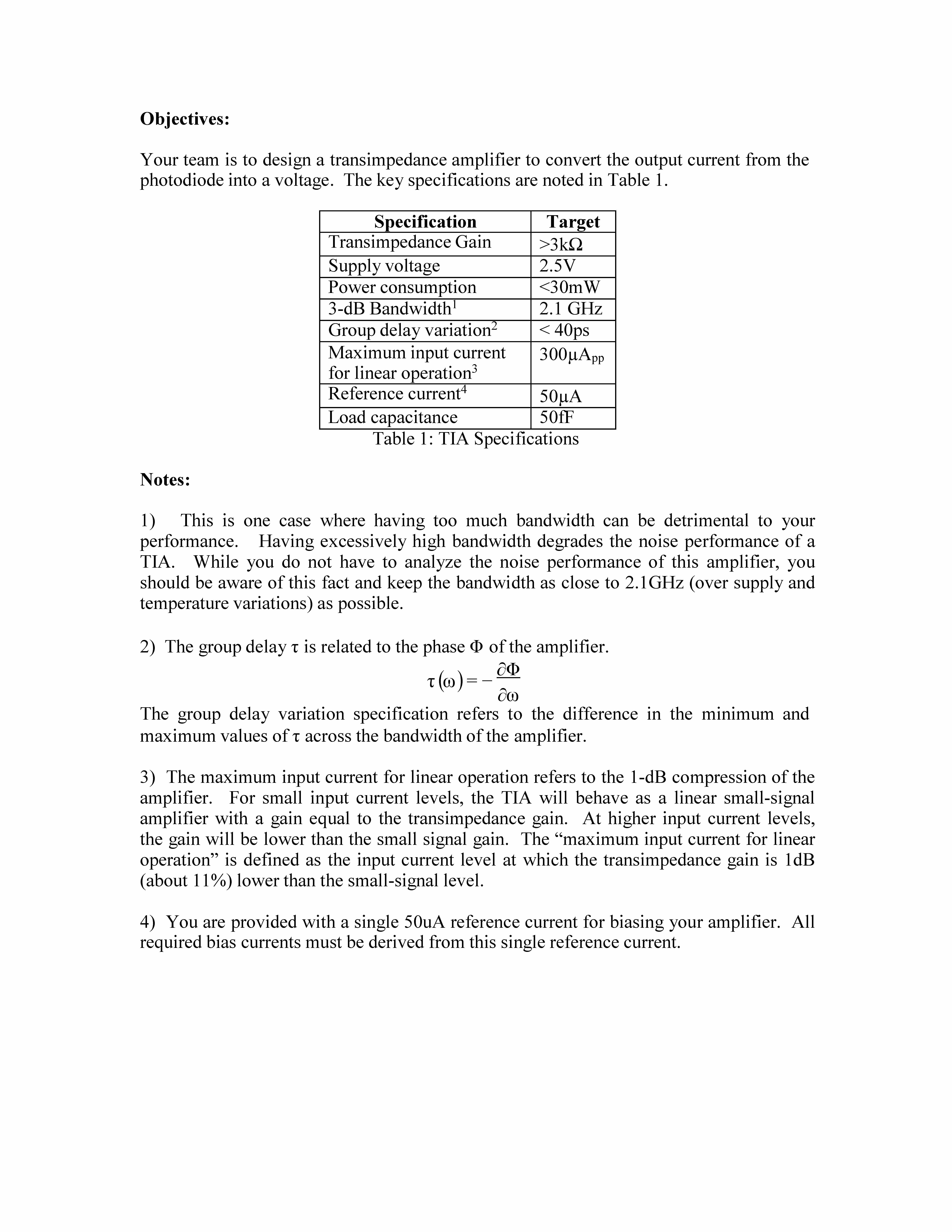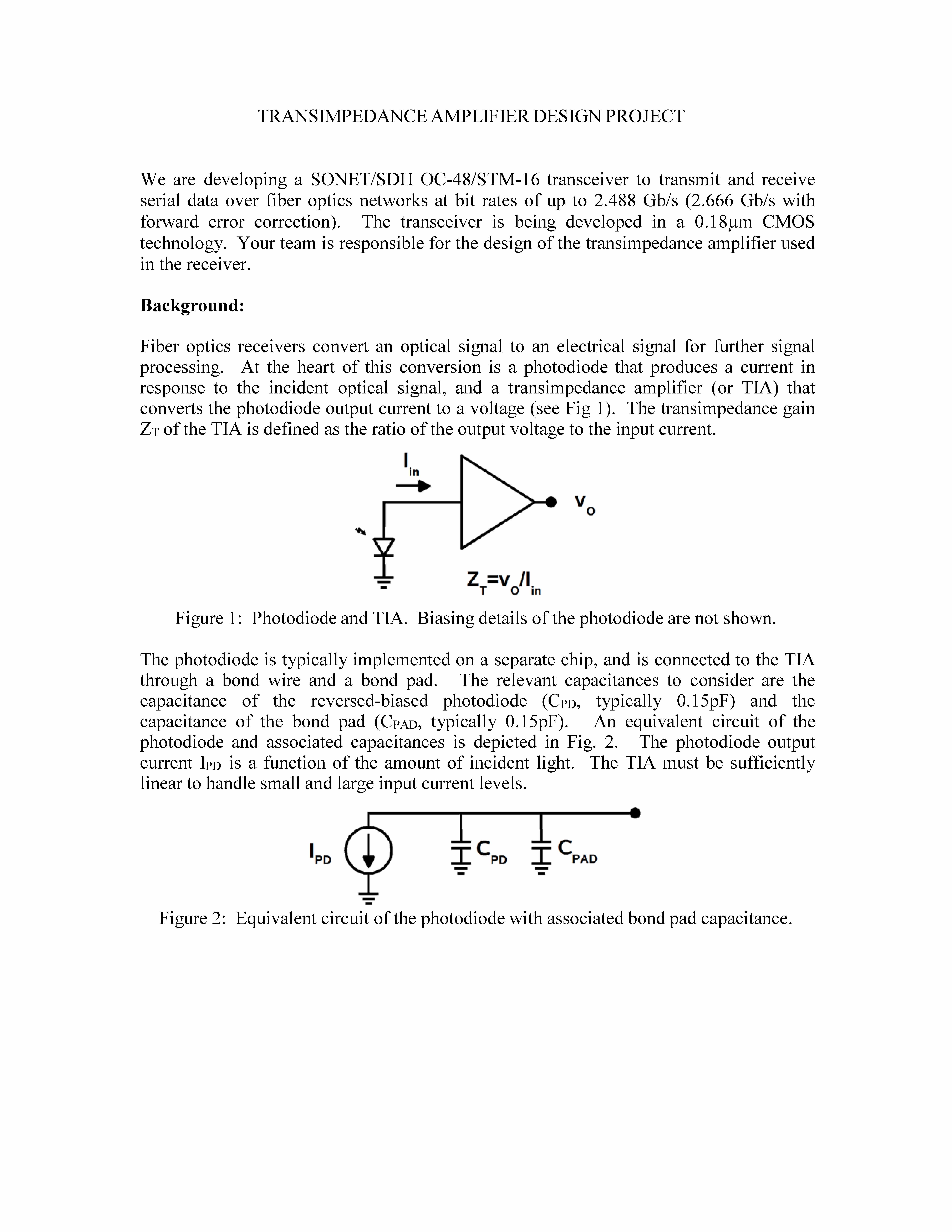 TRANSIMPEDANCE AMPLIFIER DESIGN PROJECT We are developing a SONET/...