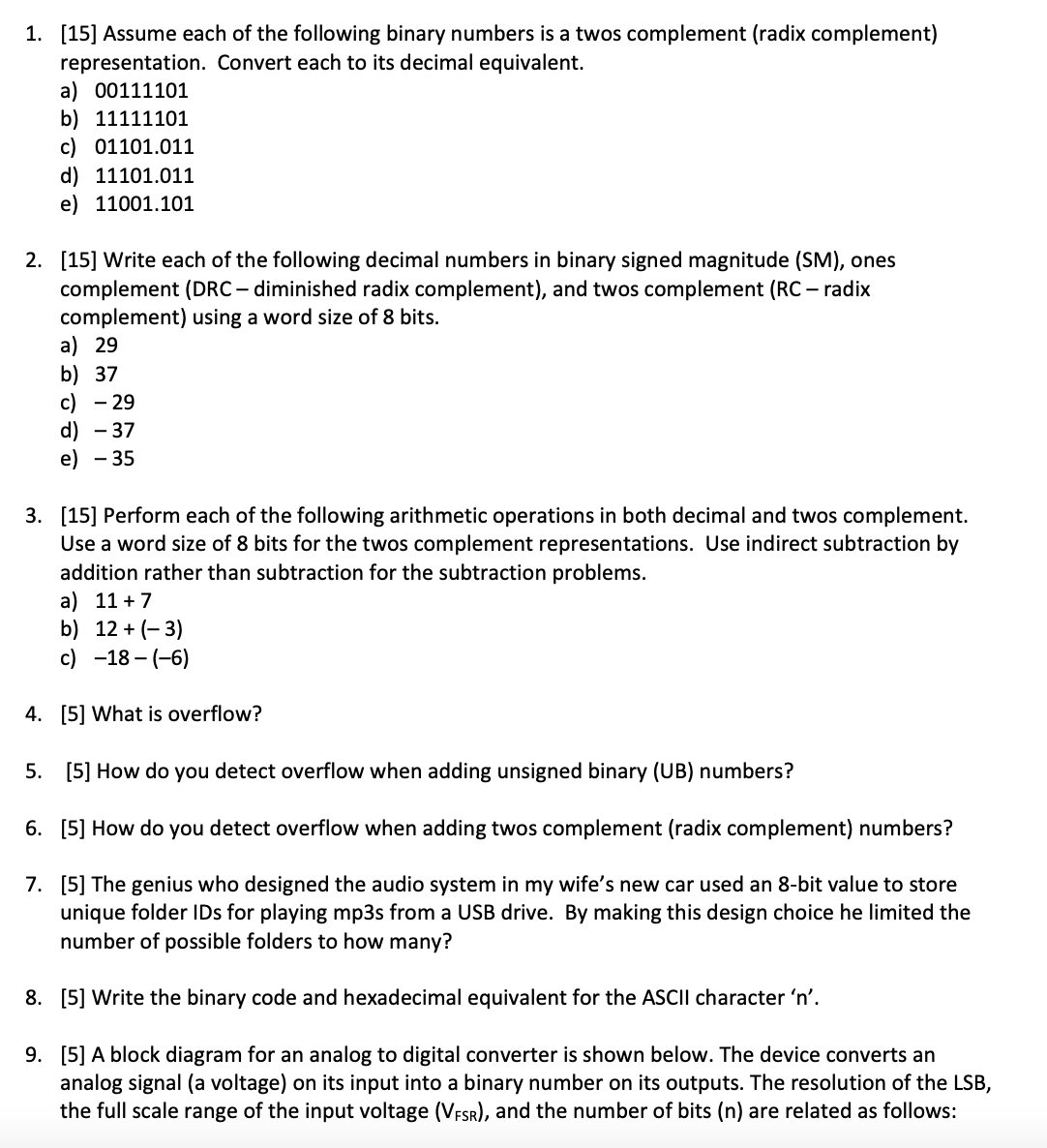 1. [15] Assume each of the following binary numbers is a twos compl...