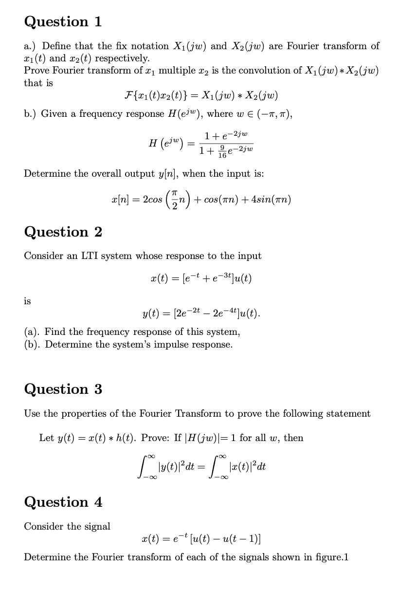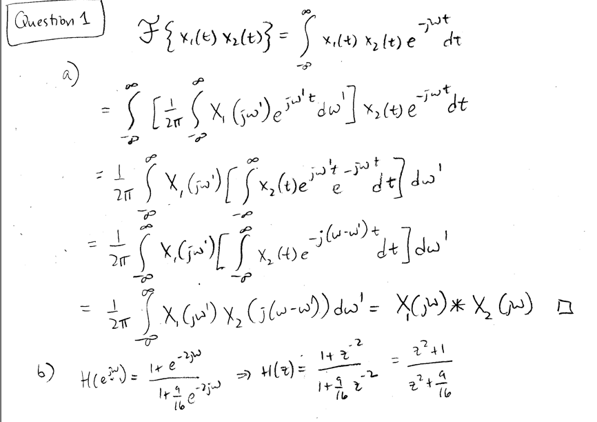 Question 1 a.) Define that the fix notation X 1 (jw) and X2(jw) ar...