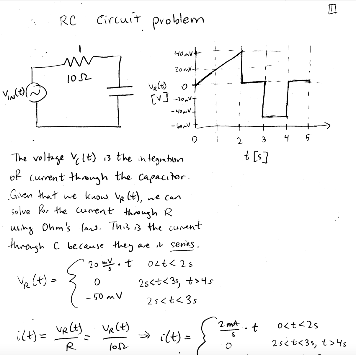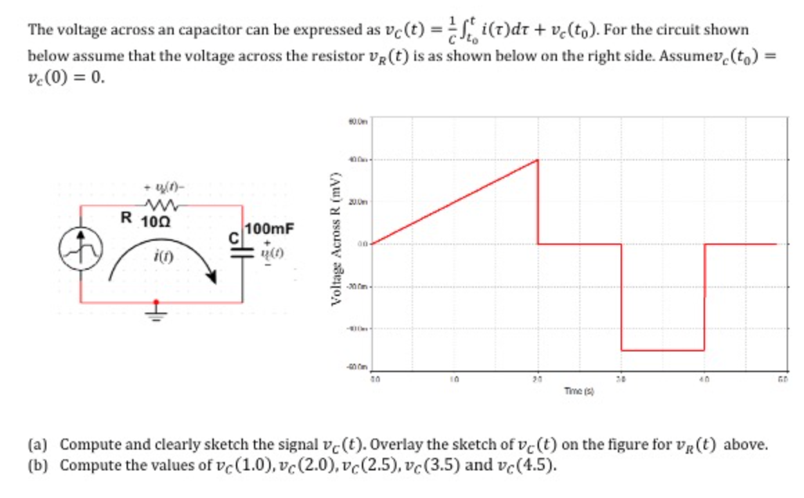 The voltage across an capacitor can be expressed as Vc (t) = i(T)dr...