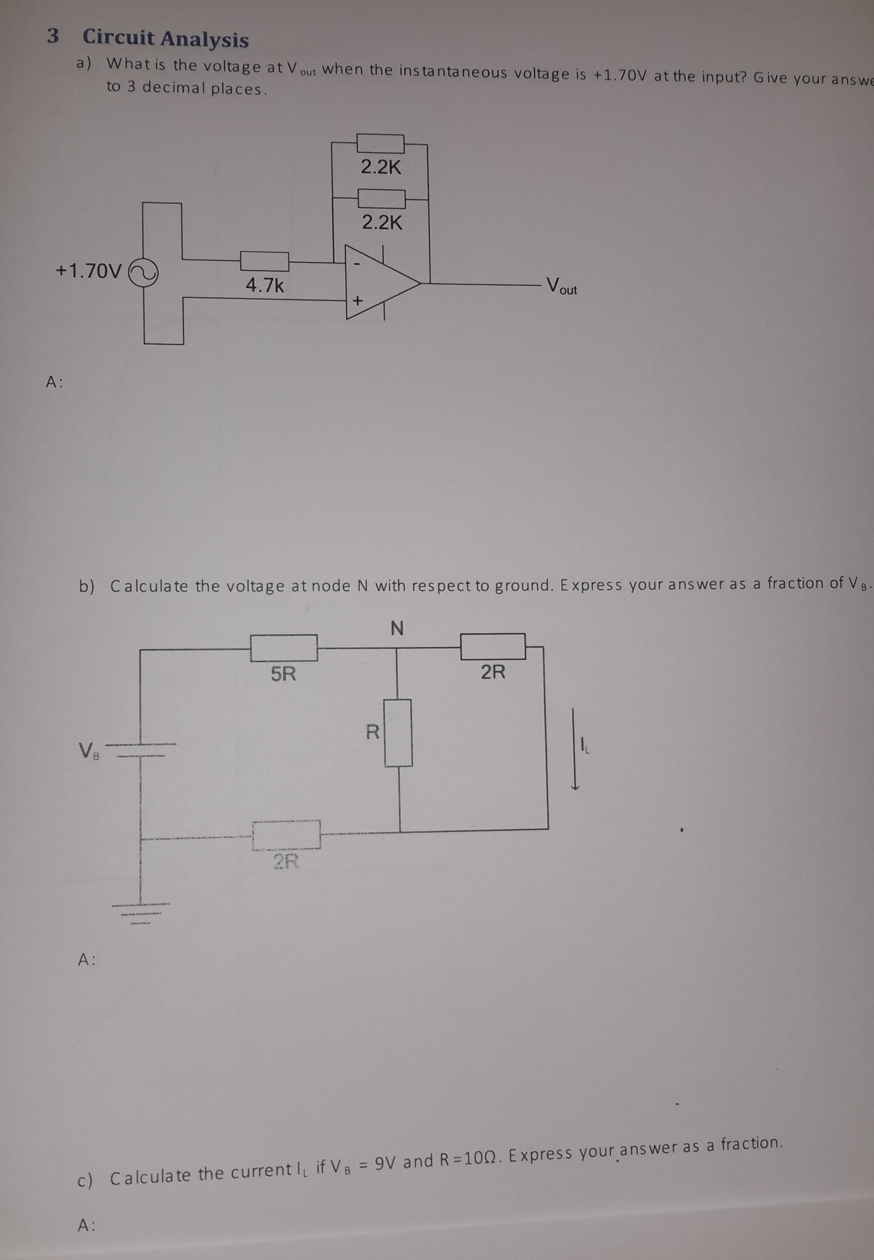 3 Circuit Analysis a) What is the voltage at Vout when the instan...