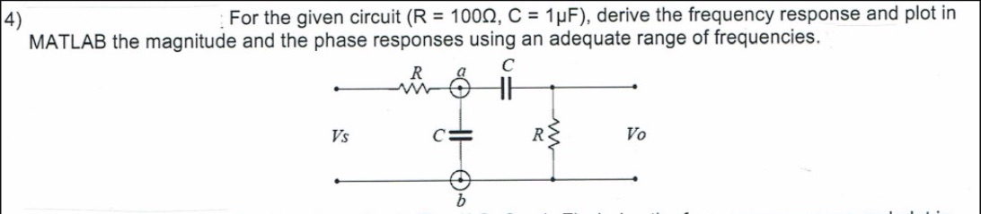 4) For the given circuit (R = 1000, C = 1pF), derive the frequency...