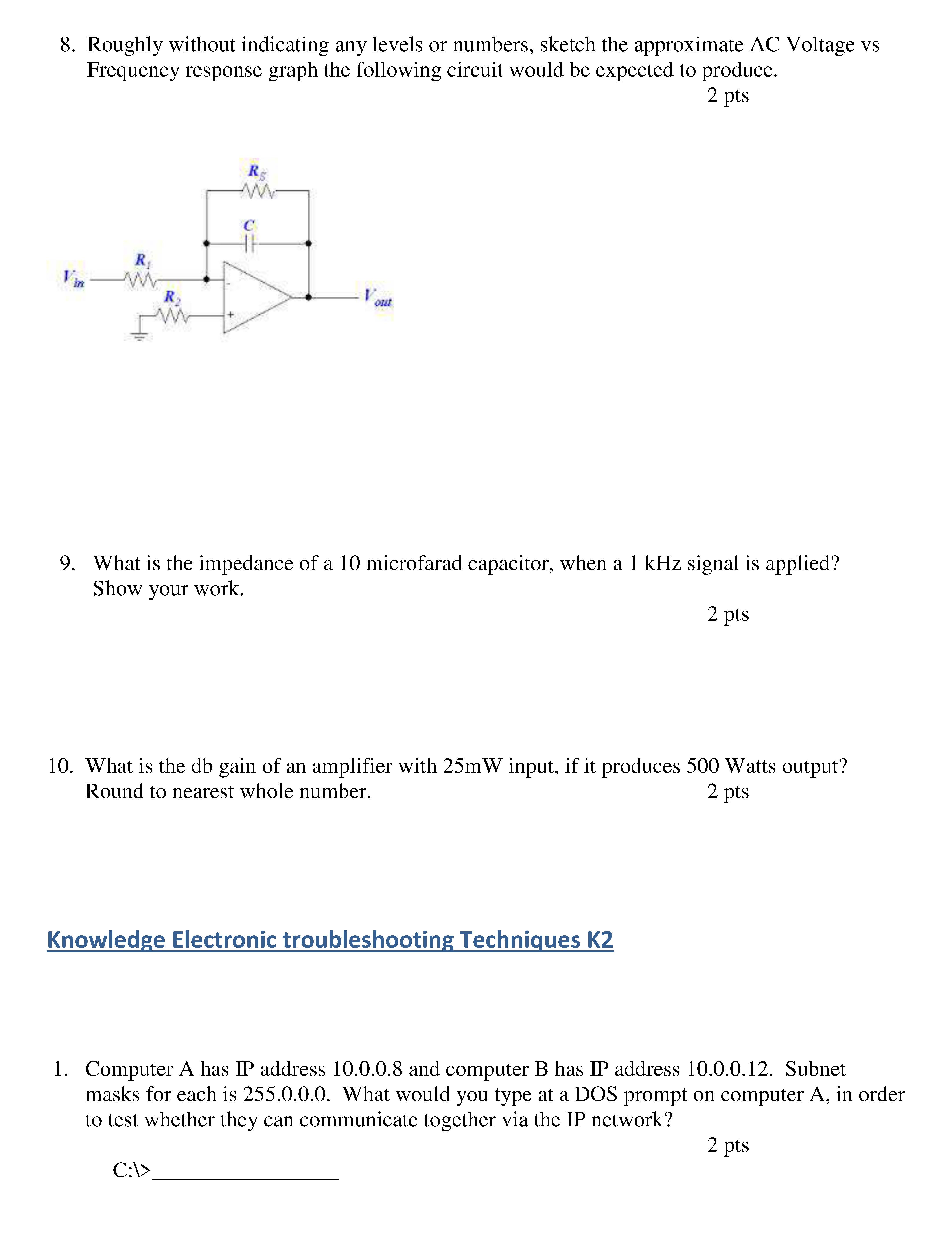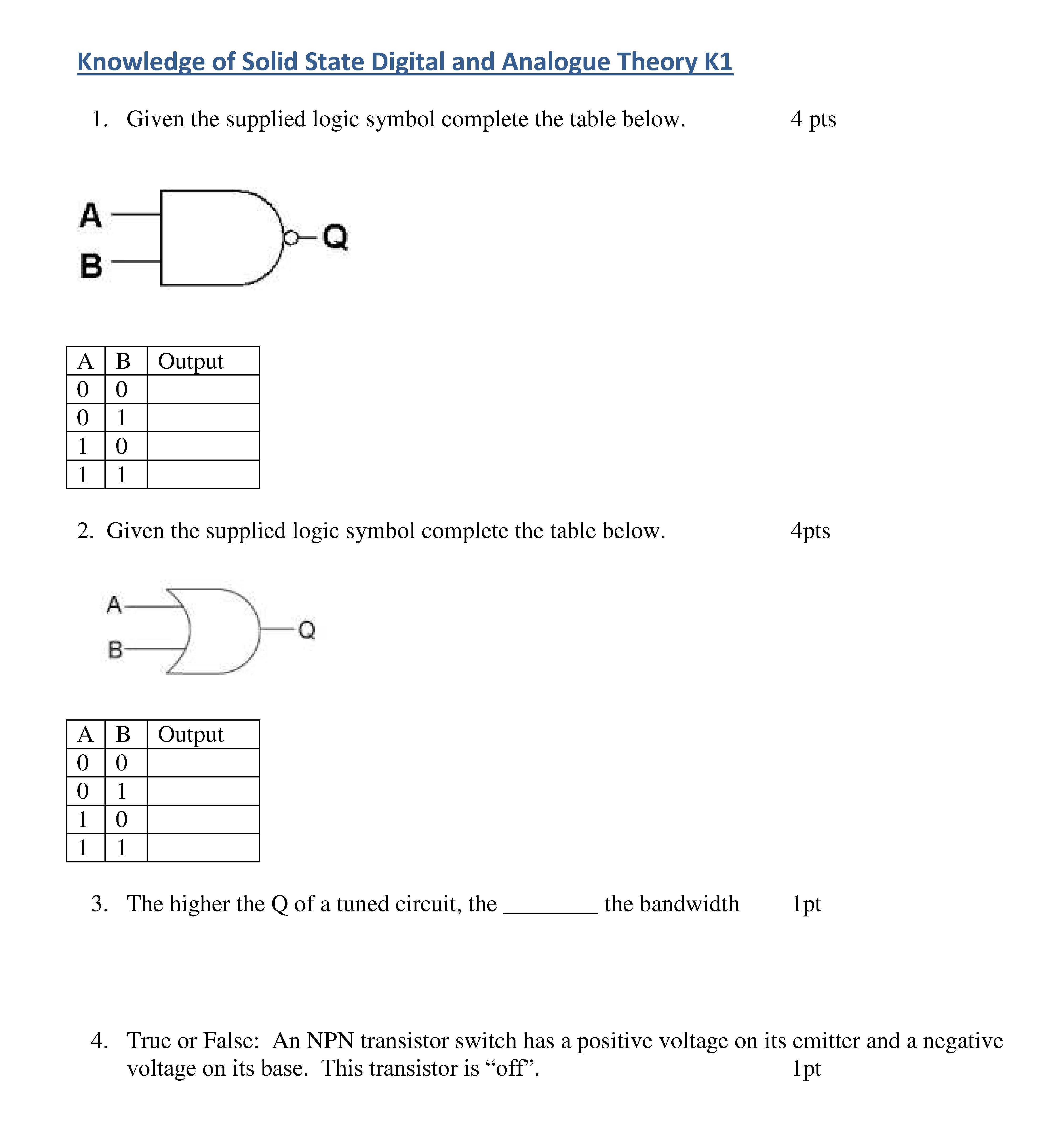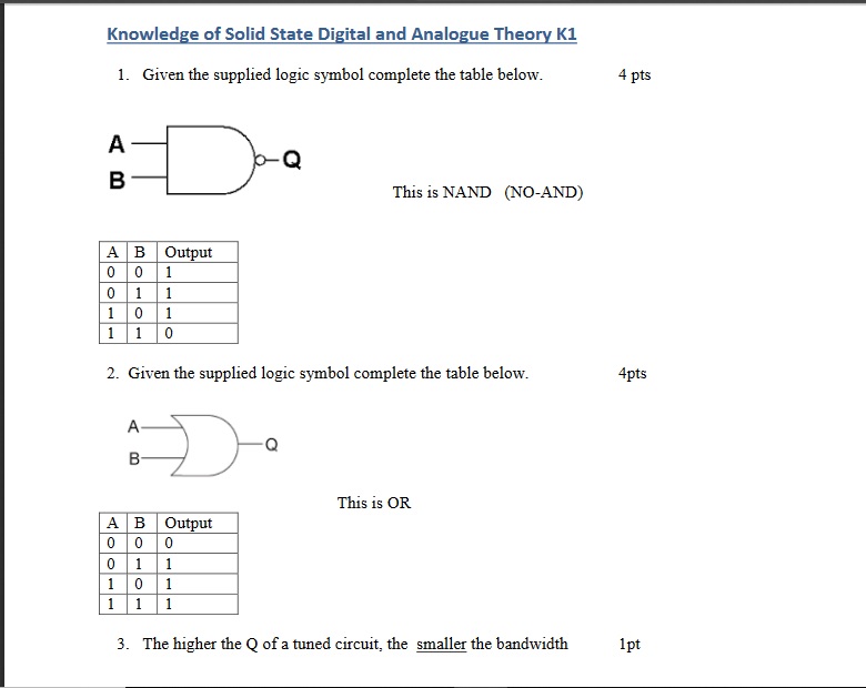 Knowledge of Solid State Digital and Analogue Theory K1 1. Given t...