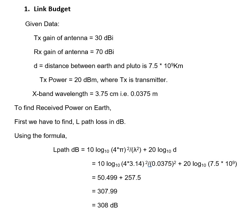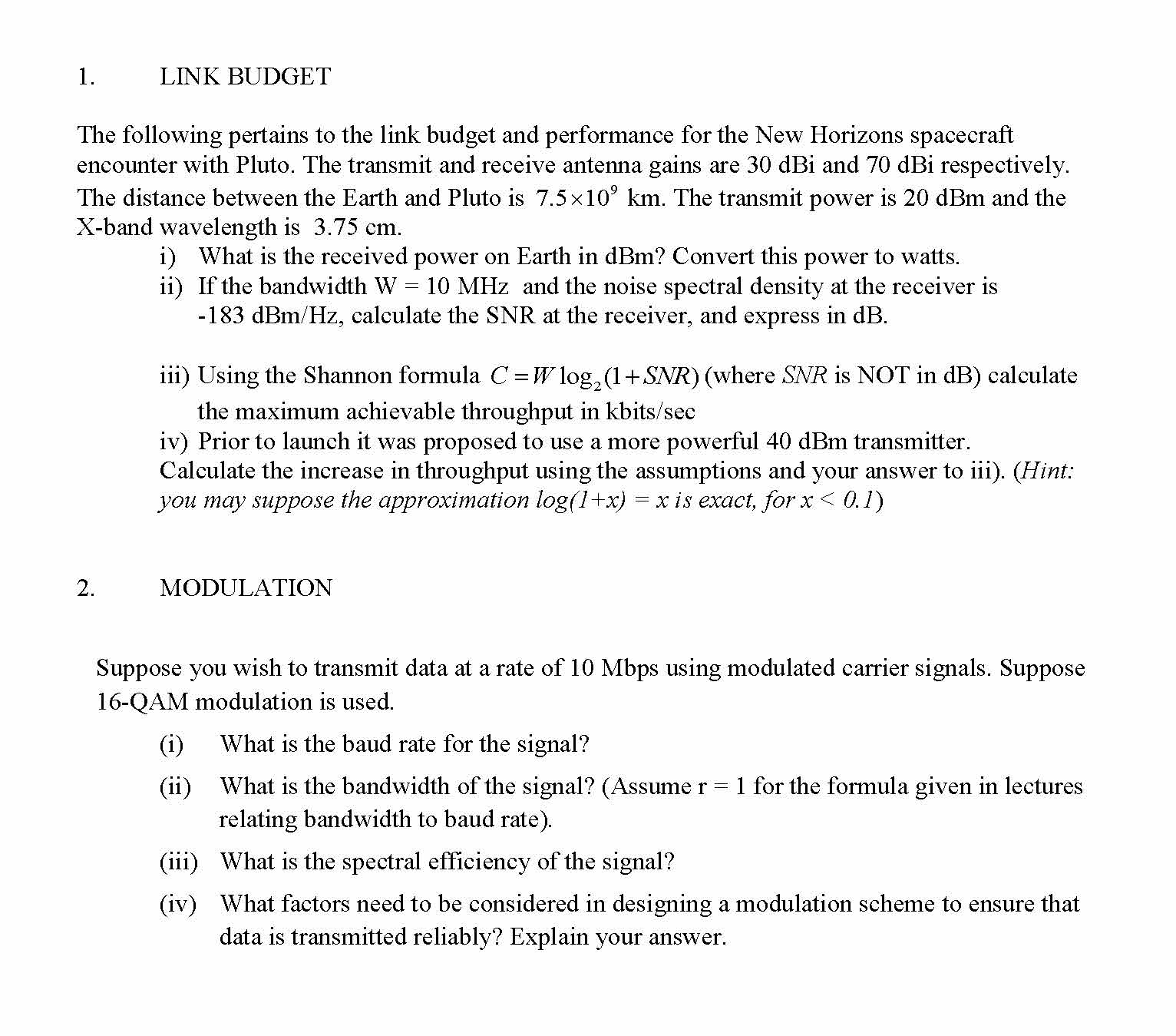 1. LINK BUDGET The following pertains to the link budget and perf...