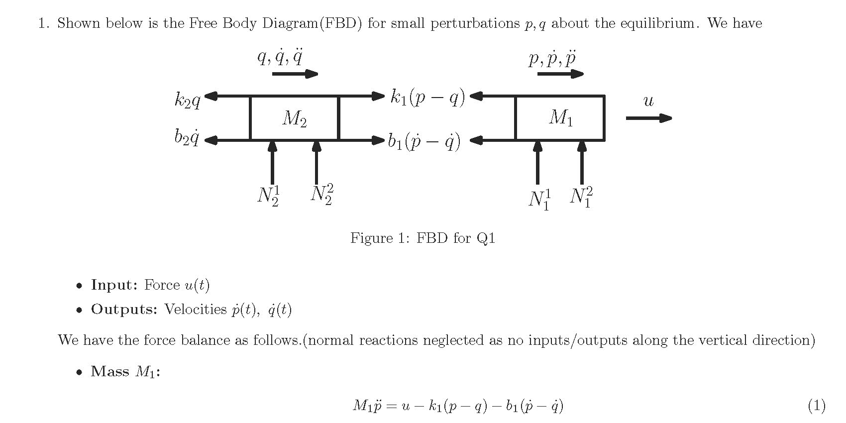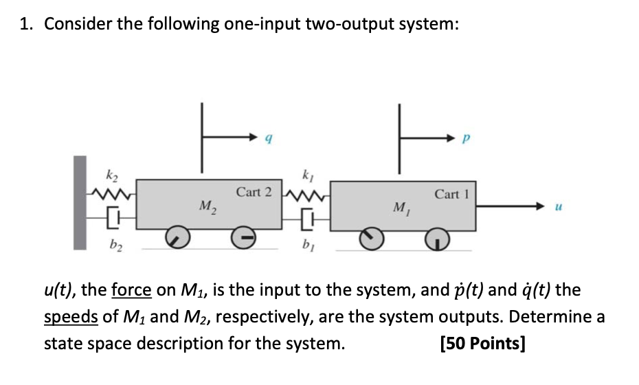 1. Consider the following one-input two-output system: p k2 k m...