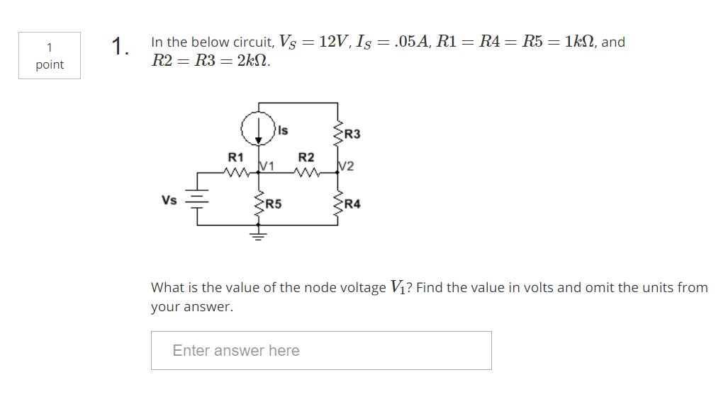 1 1. In the below circuit, Vs=12V, = Is = .05A, R1 - R4 - R5 - 1k...