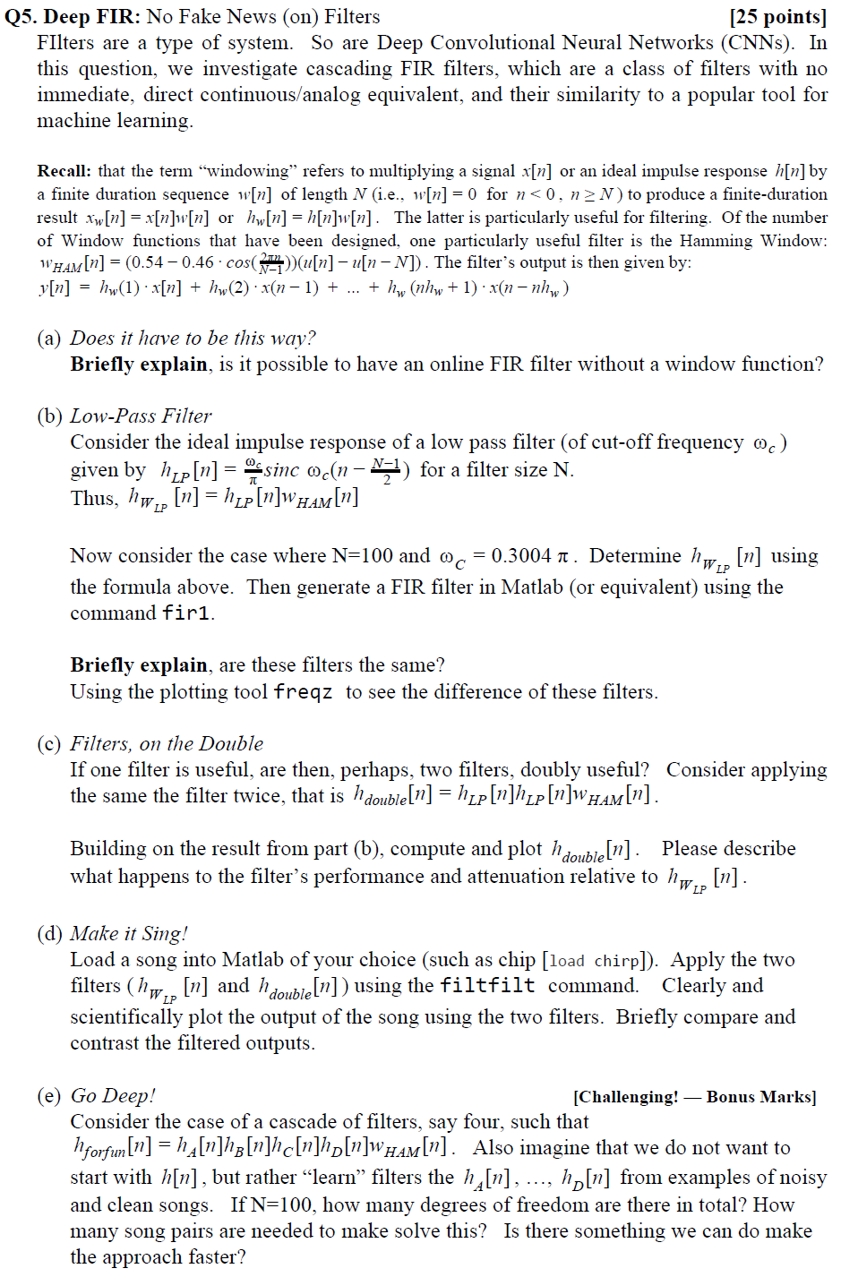 Q5. Deep FIR: No Fake News (on) Filters [25 points] Filters are a...