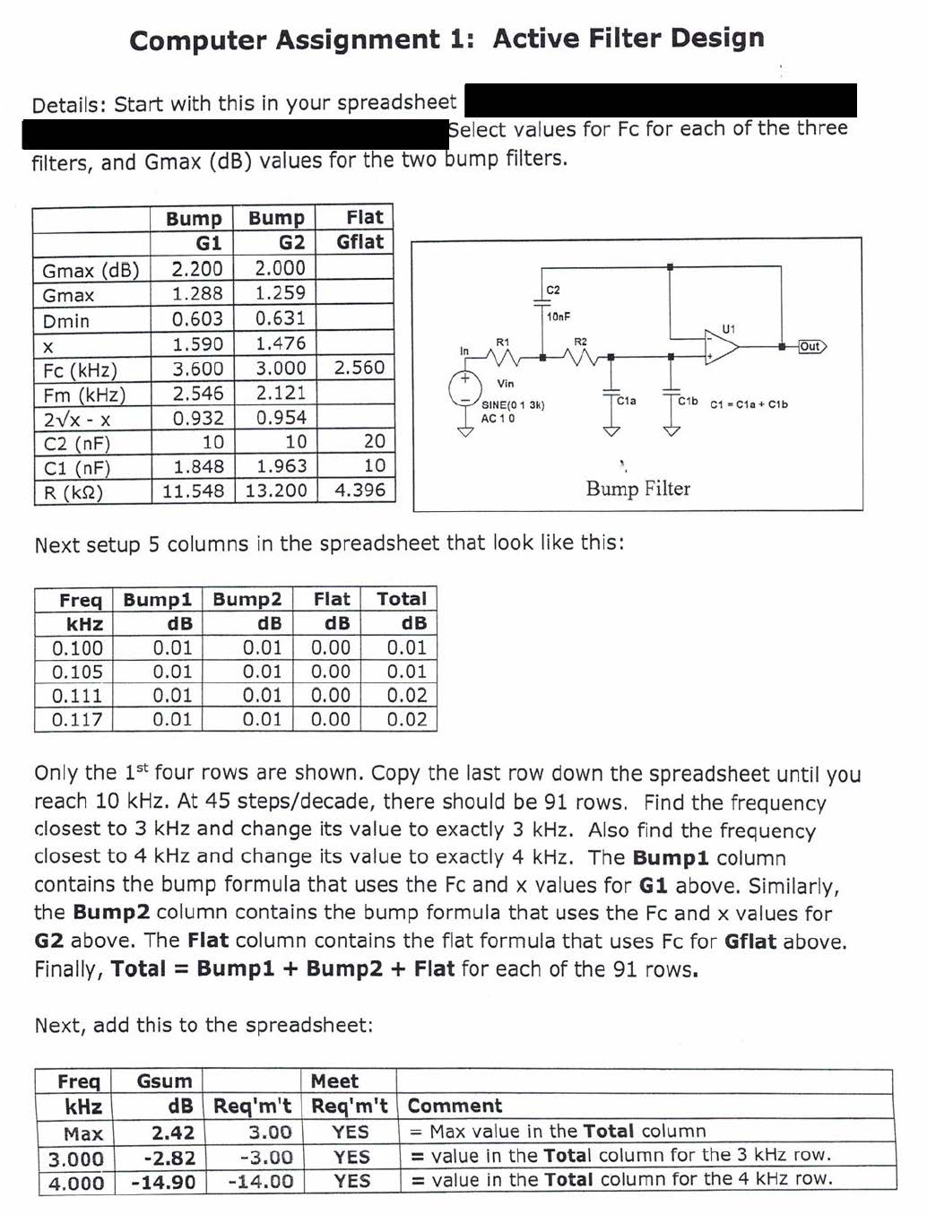 Computer Assignment 1: Active Filter Design Details: Start with th...