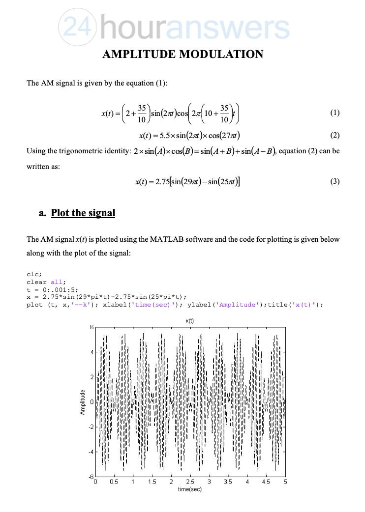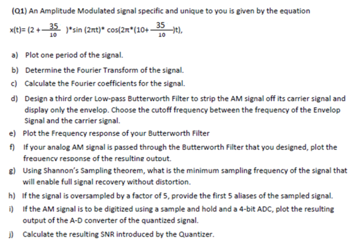 (Q1) An Amplitude Modulated signal specific and unique to you is gi...