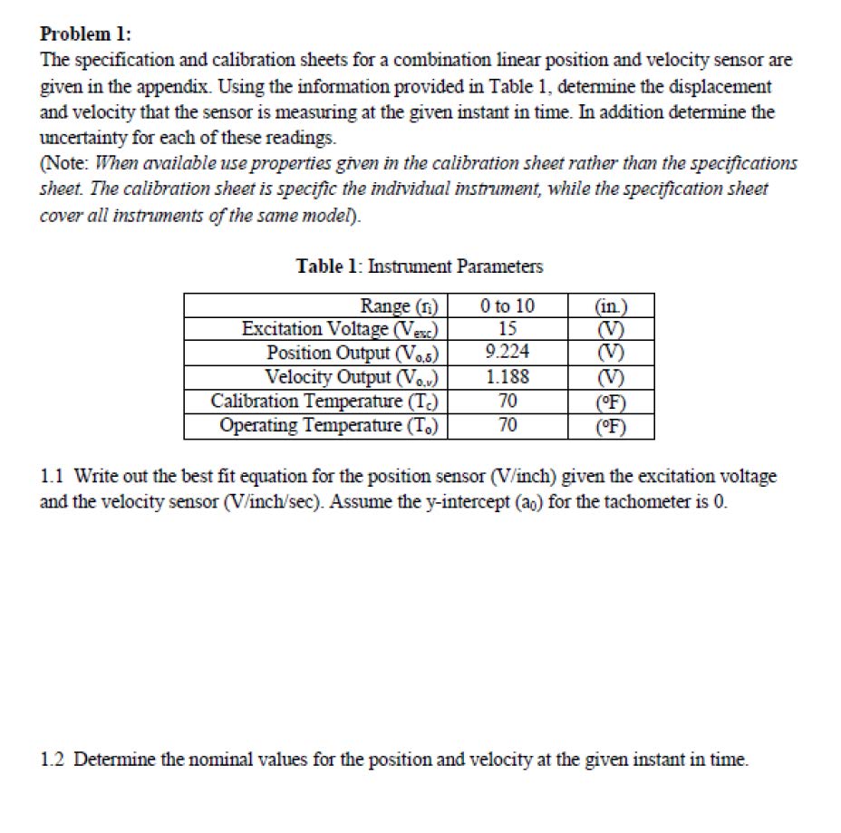 Problem 1: The specification and calibration sheets for a combinat...