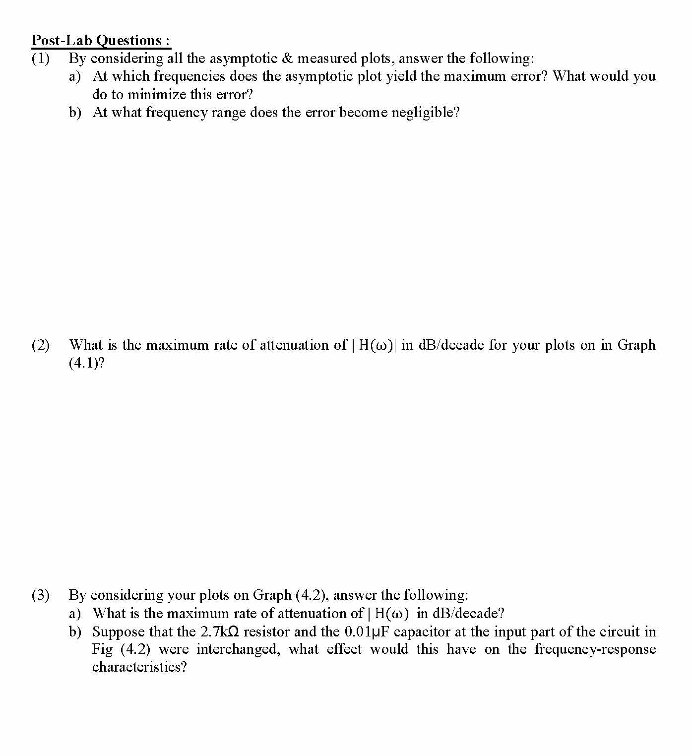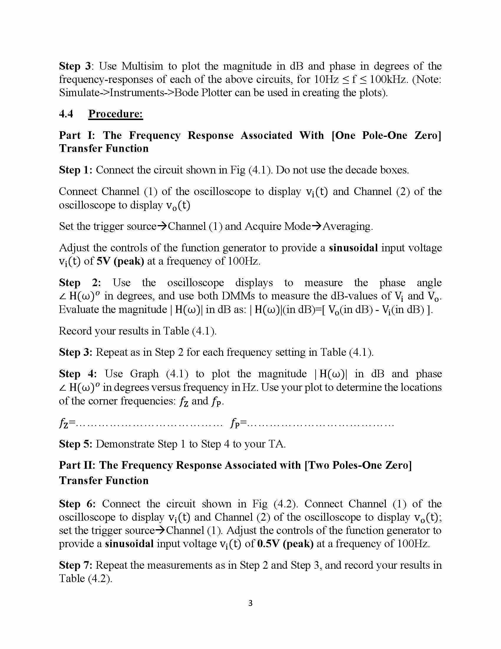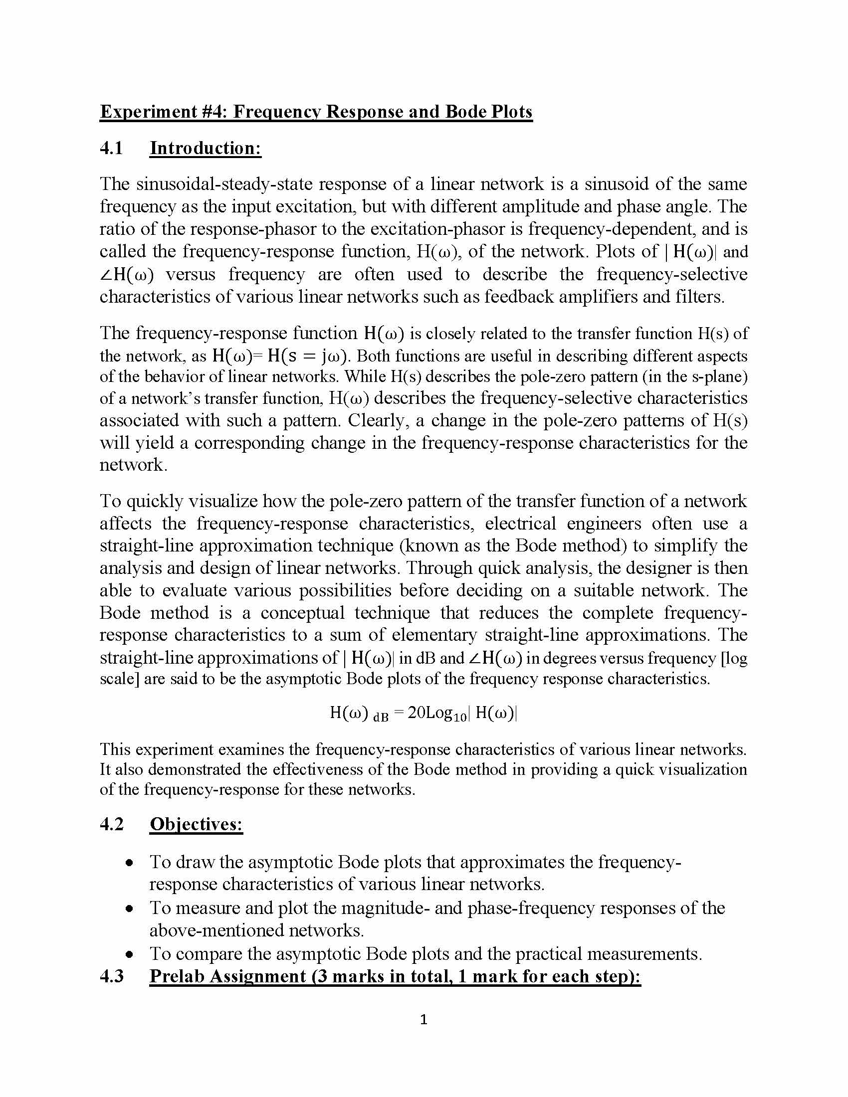 Experiment #4: Frequency Response and Bode Plots 4.1 Introduction:...