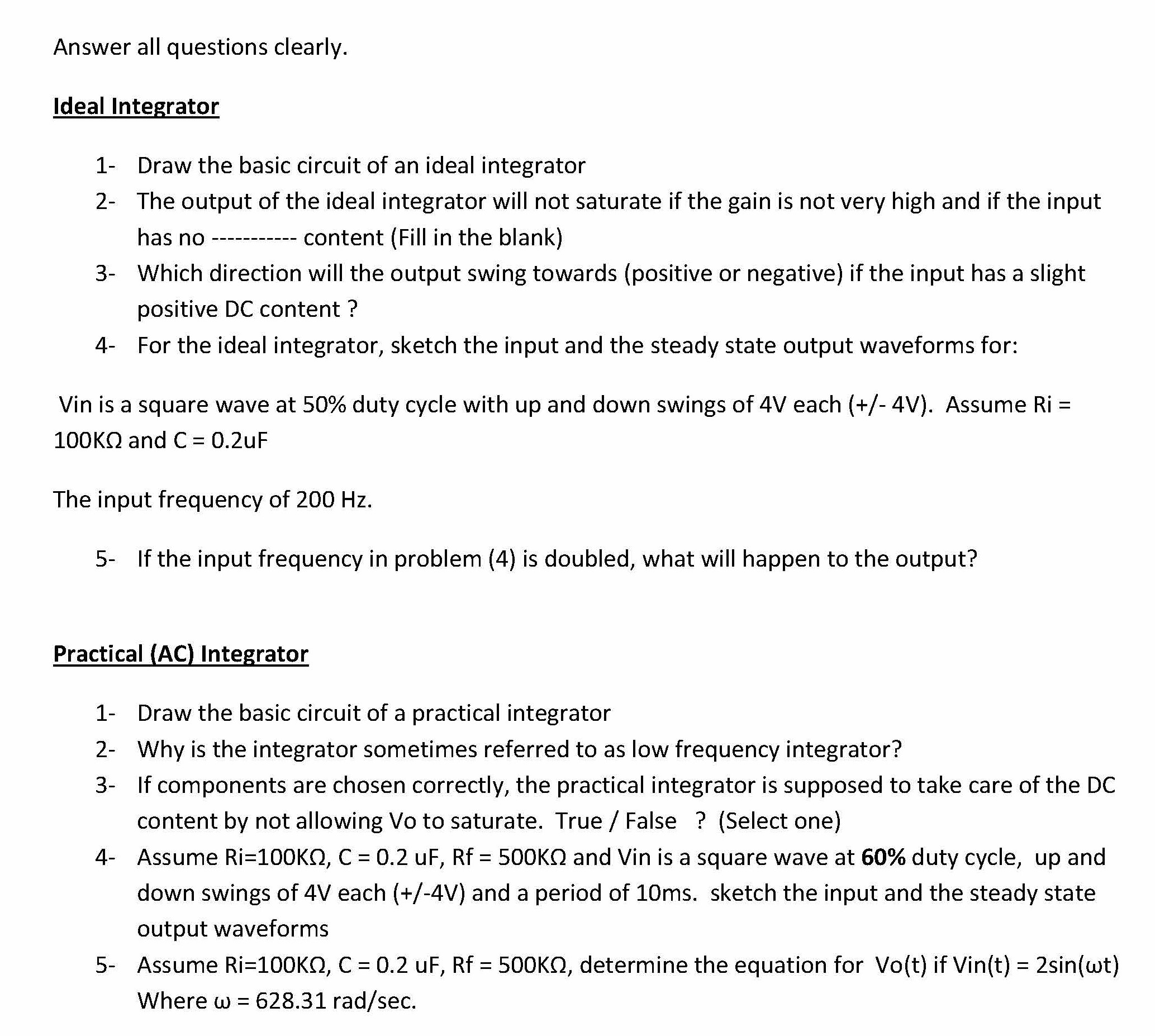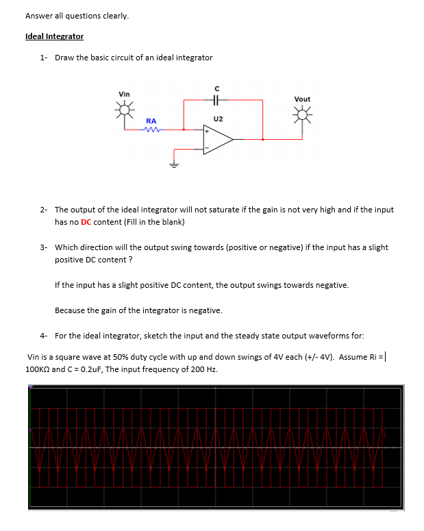 Answer all questions clearly. Ideal Integrator 1- Draw the basic ...
