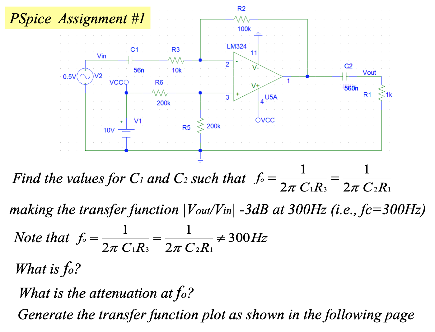 PSpice Assignment #1 Find the values for C1 and C2 such that maki...