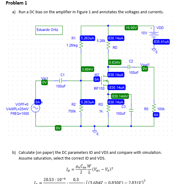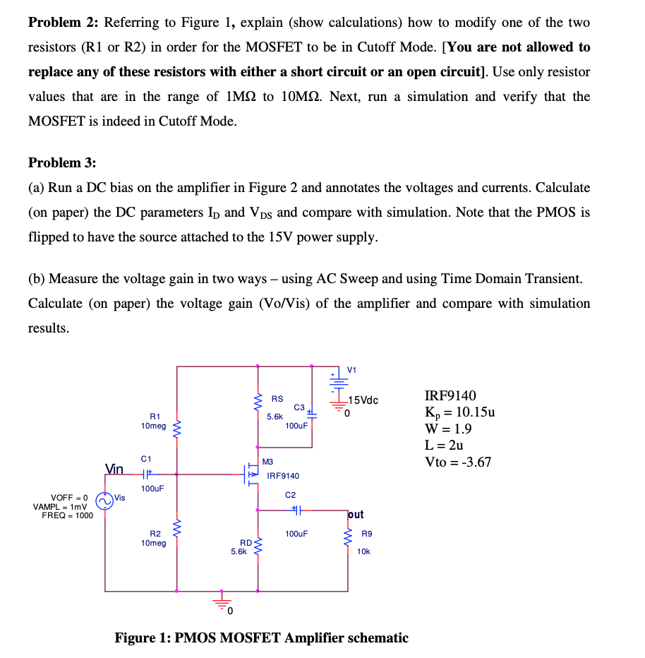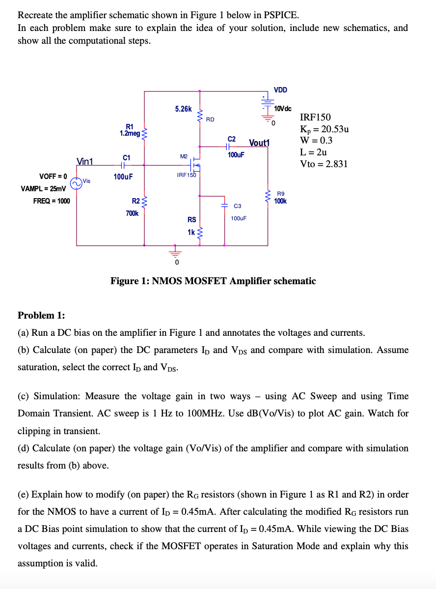 Recreate the amplifier schematic shown in Figure 1 below in PSPICE....