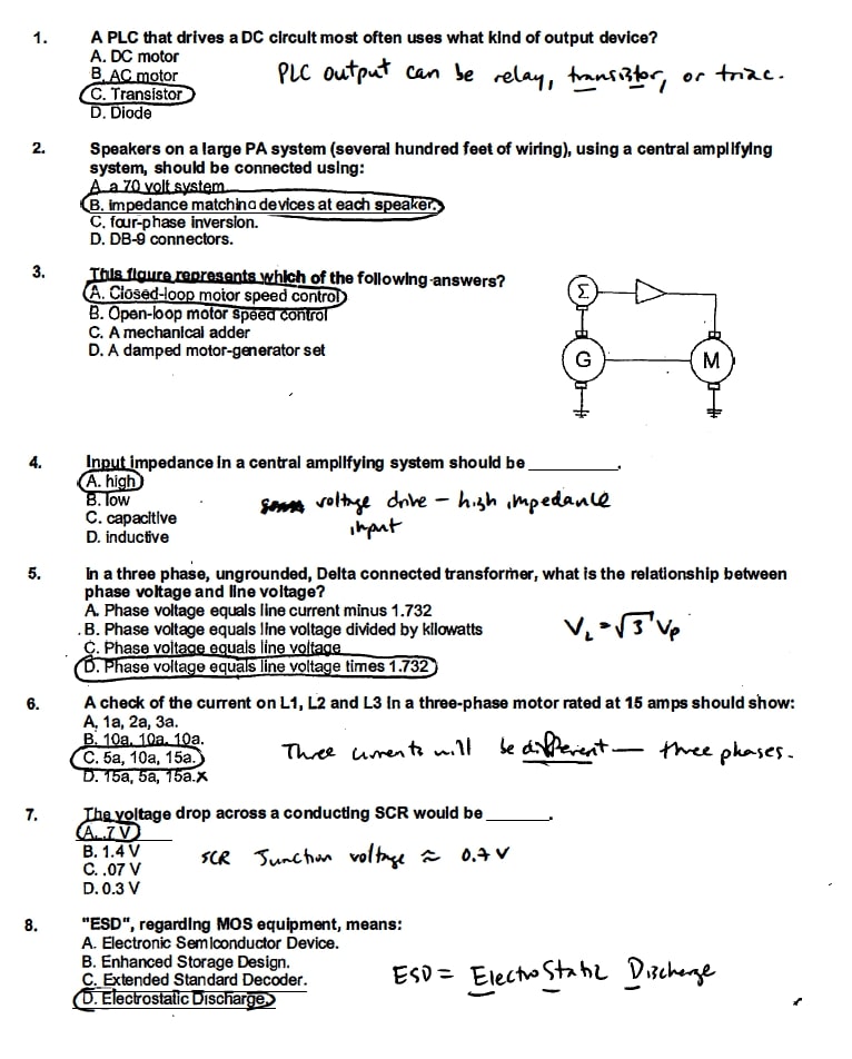 1. A PLC that drives a DC circuit most often uses what kind of outp...