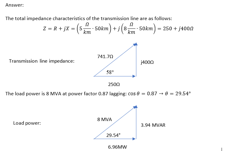 A three-phase transmission line, feeding the village, is 50 km long...