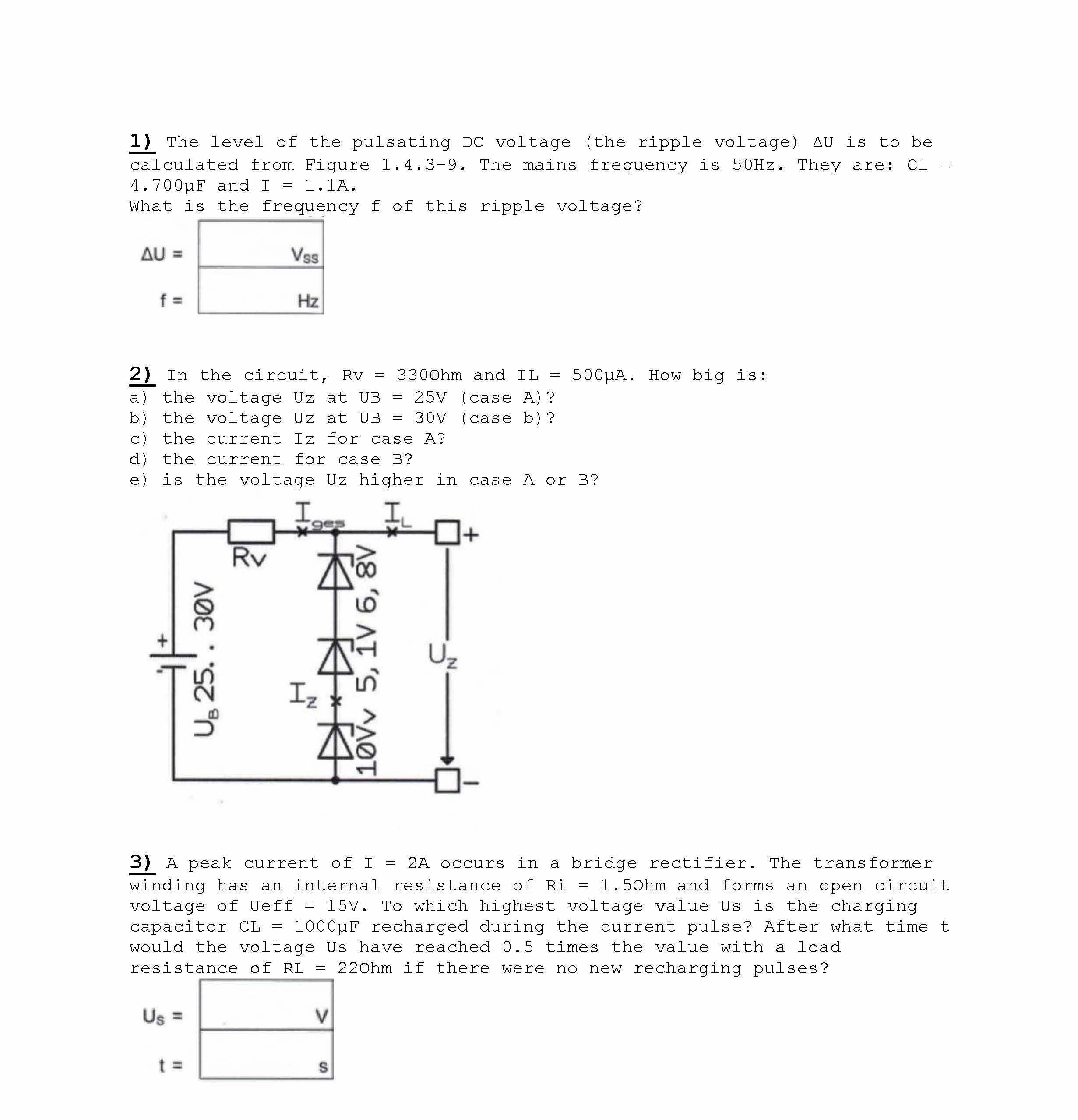 1) The level of the pulsating DC voltage (the ripple voltage) ΔU i...