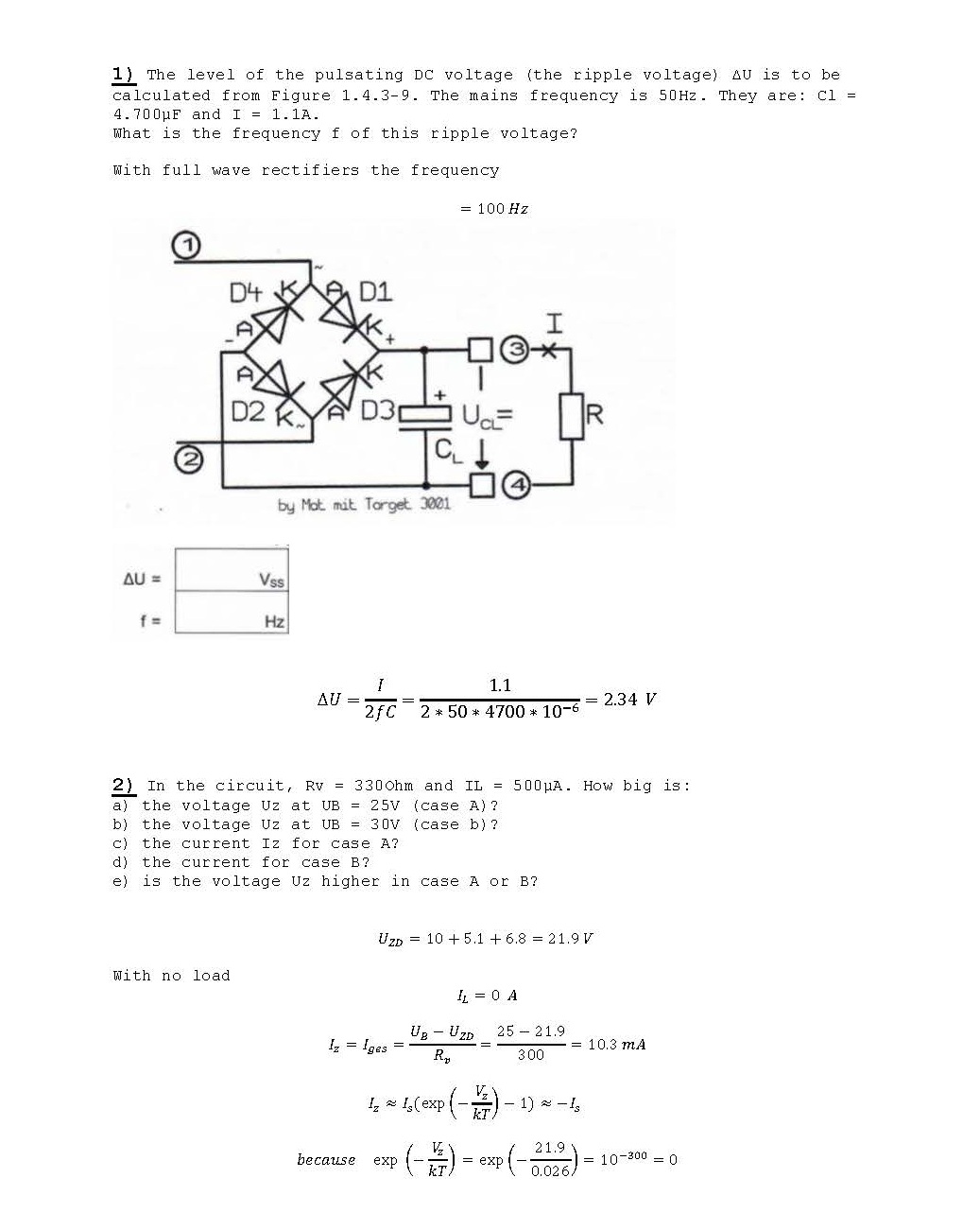 1) The level of the pulsating DC voltage (the ripple voltage) Δ...