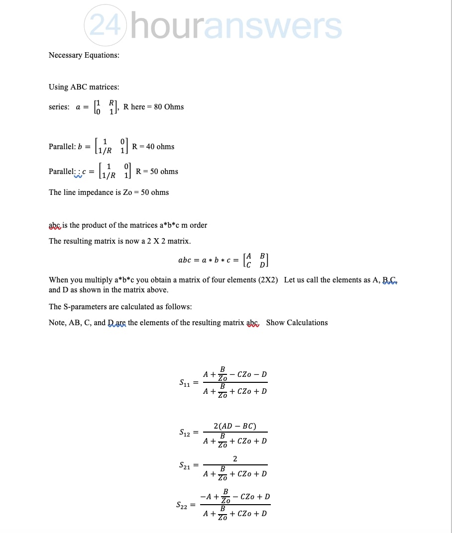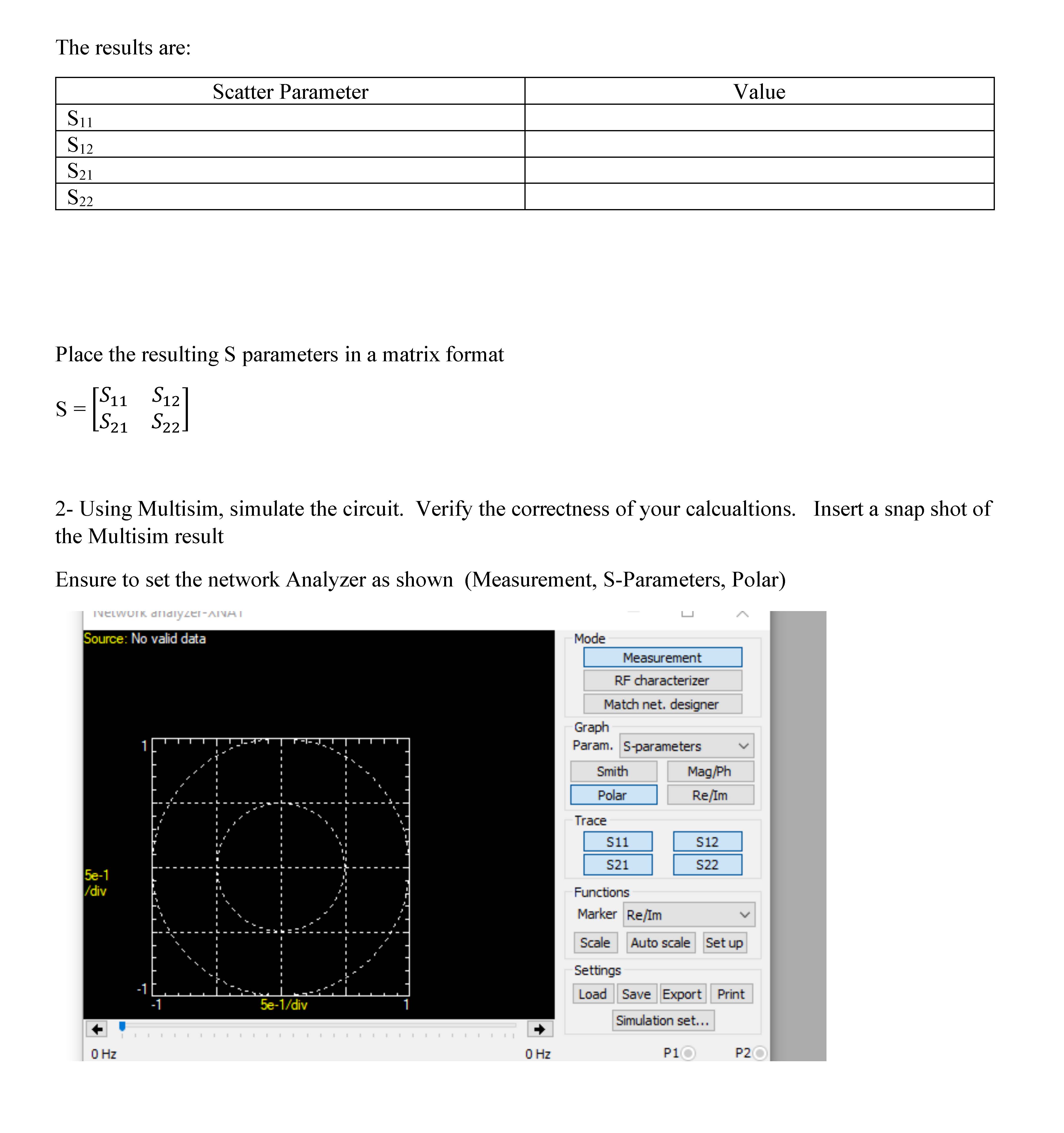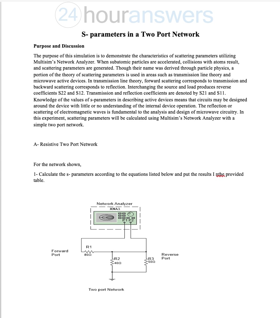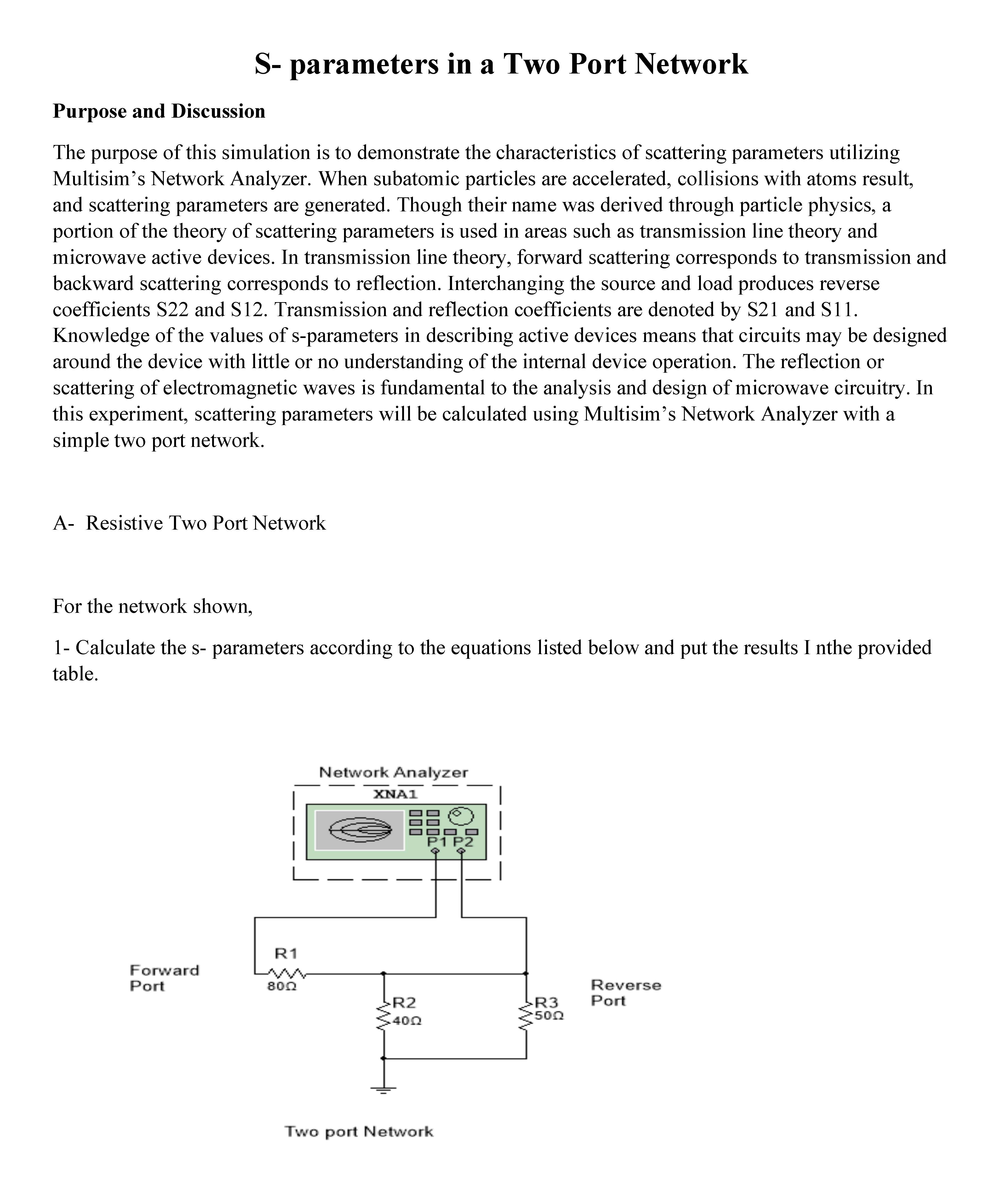 S- parameters in a Two Port Network Purpose and Discussion The pu...