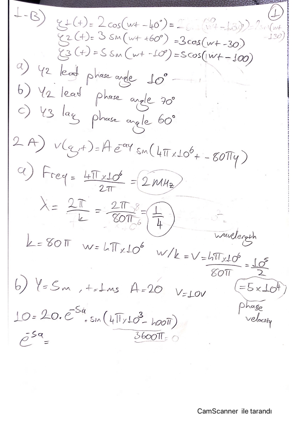 QI-B) Given two waves characterized by yl(t) 2cos( cot -40° y2...