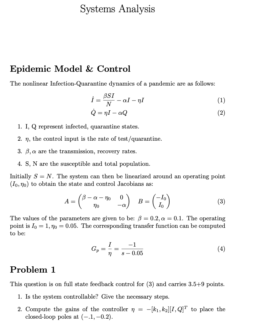 Systems Analysis Epidemic Model & Control The nonlinear Infec...