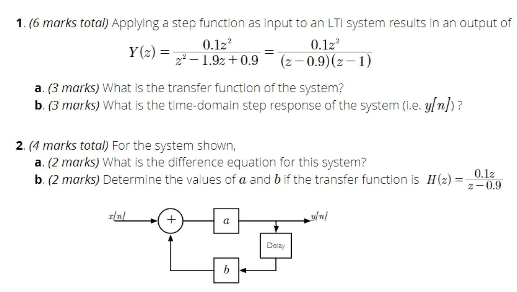 1. (6 marks total) Applying a step function as input to an LTI syst...