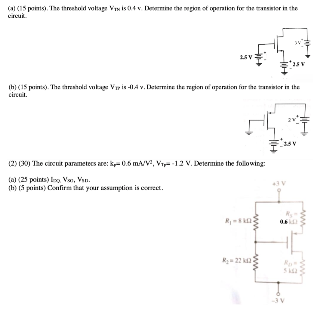 (a) (15 points). The threshold voltage VTN is 0.4 v. Determine the...