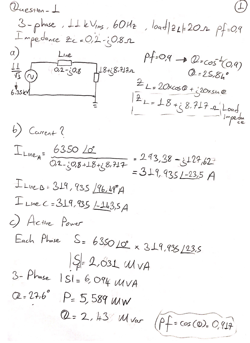 1. A 3-phase 11 kV, 60 Hz substation supplies an industrial load t...