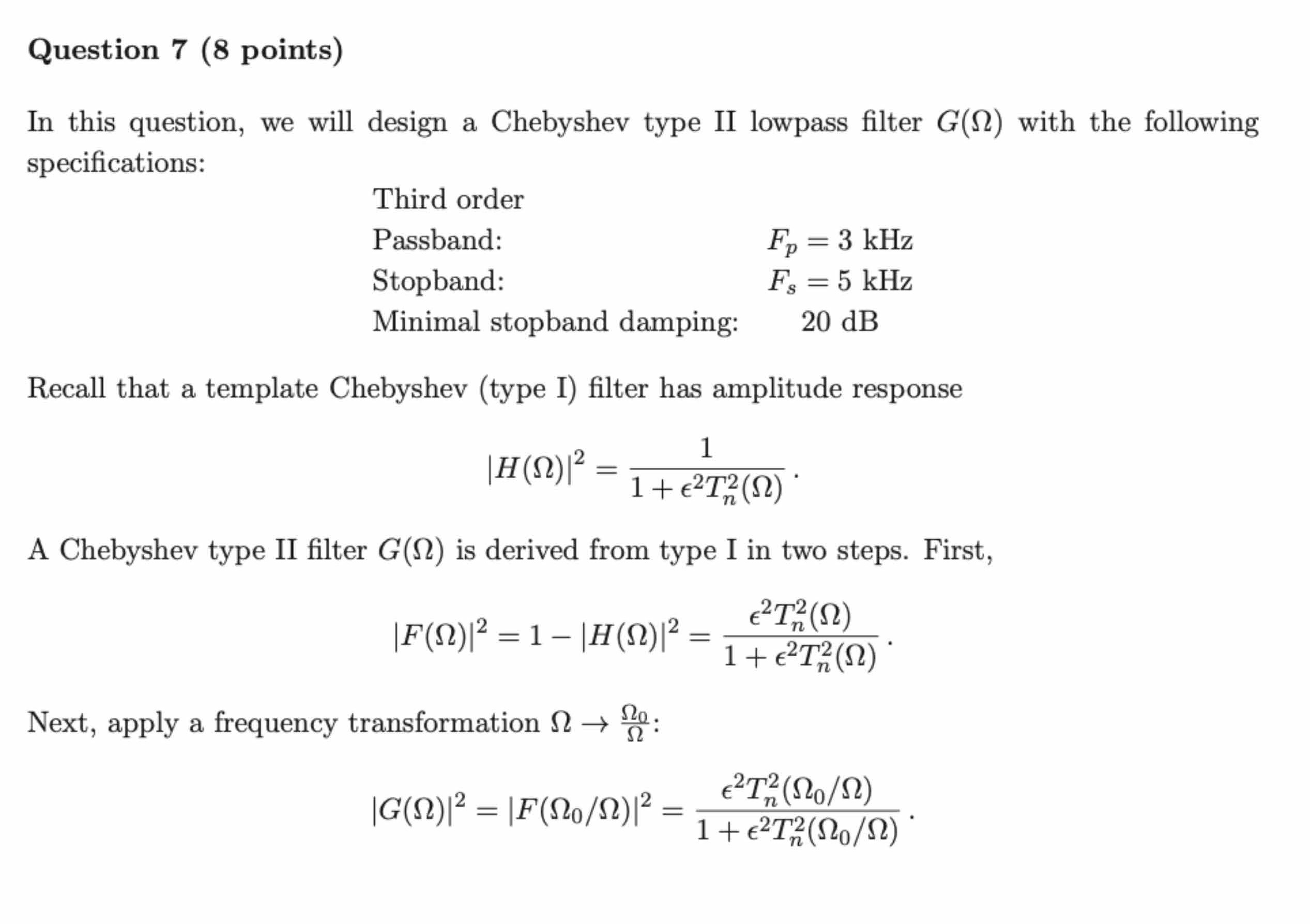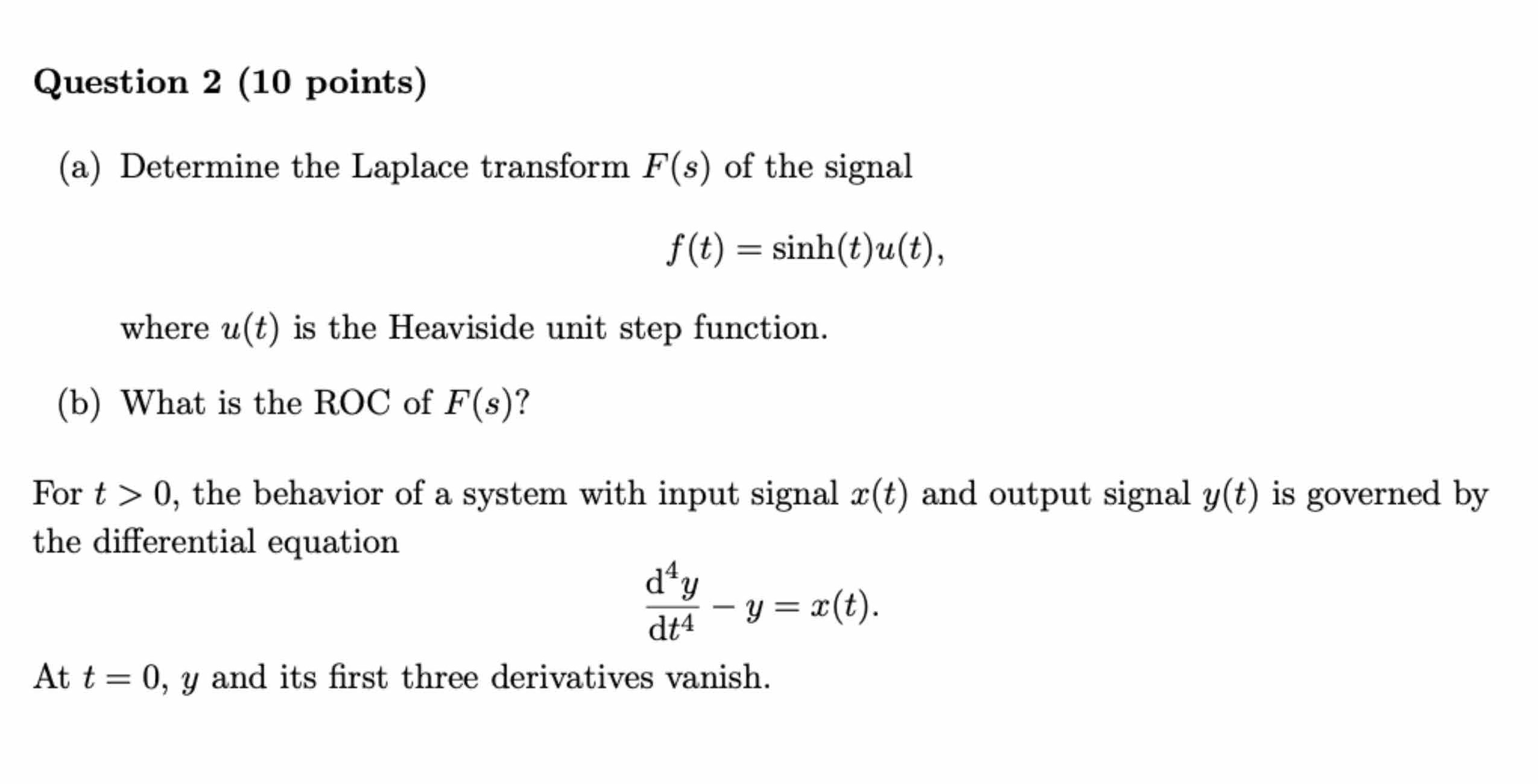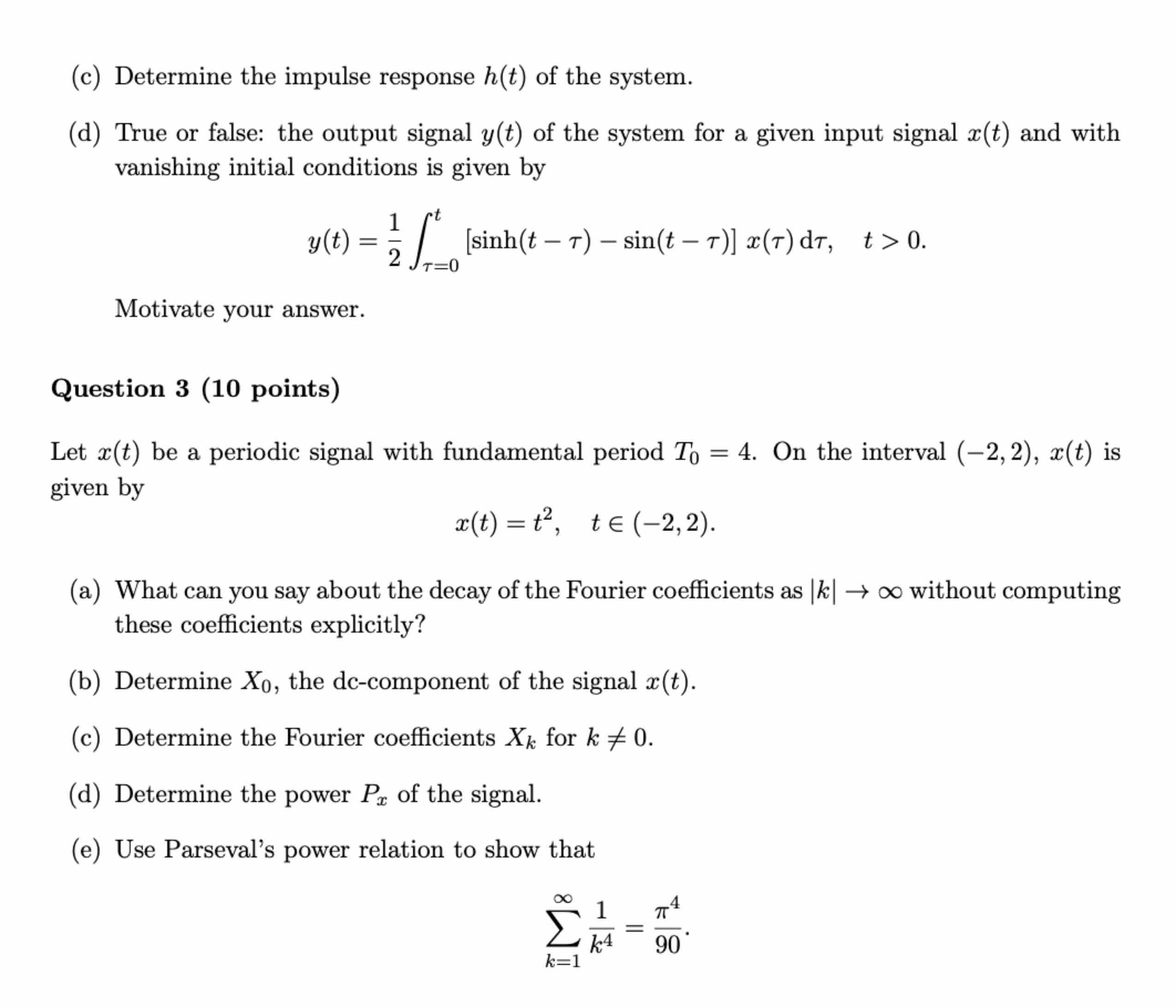 Question 1 (10 points) Given a SISO system with input signal x(t) ...