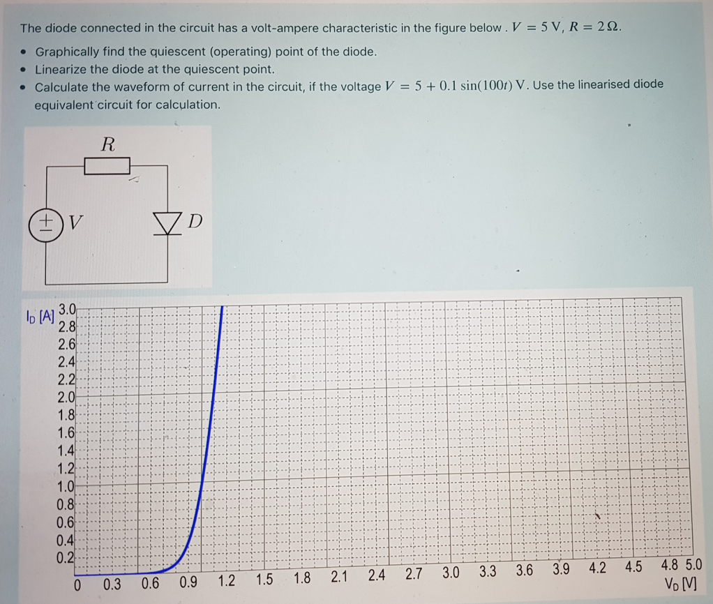 The diode connected in the circuit has a volt-ampere characteristic...