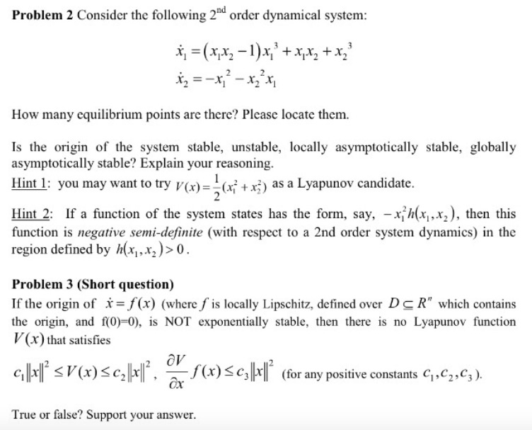 Problem 2 Consider the following 2nd order dynamical system: x1 + ...